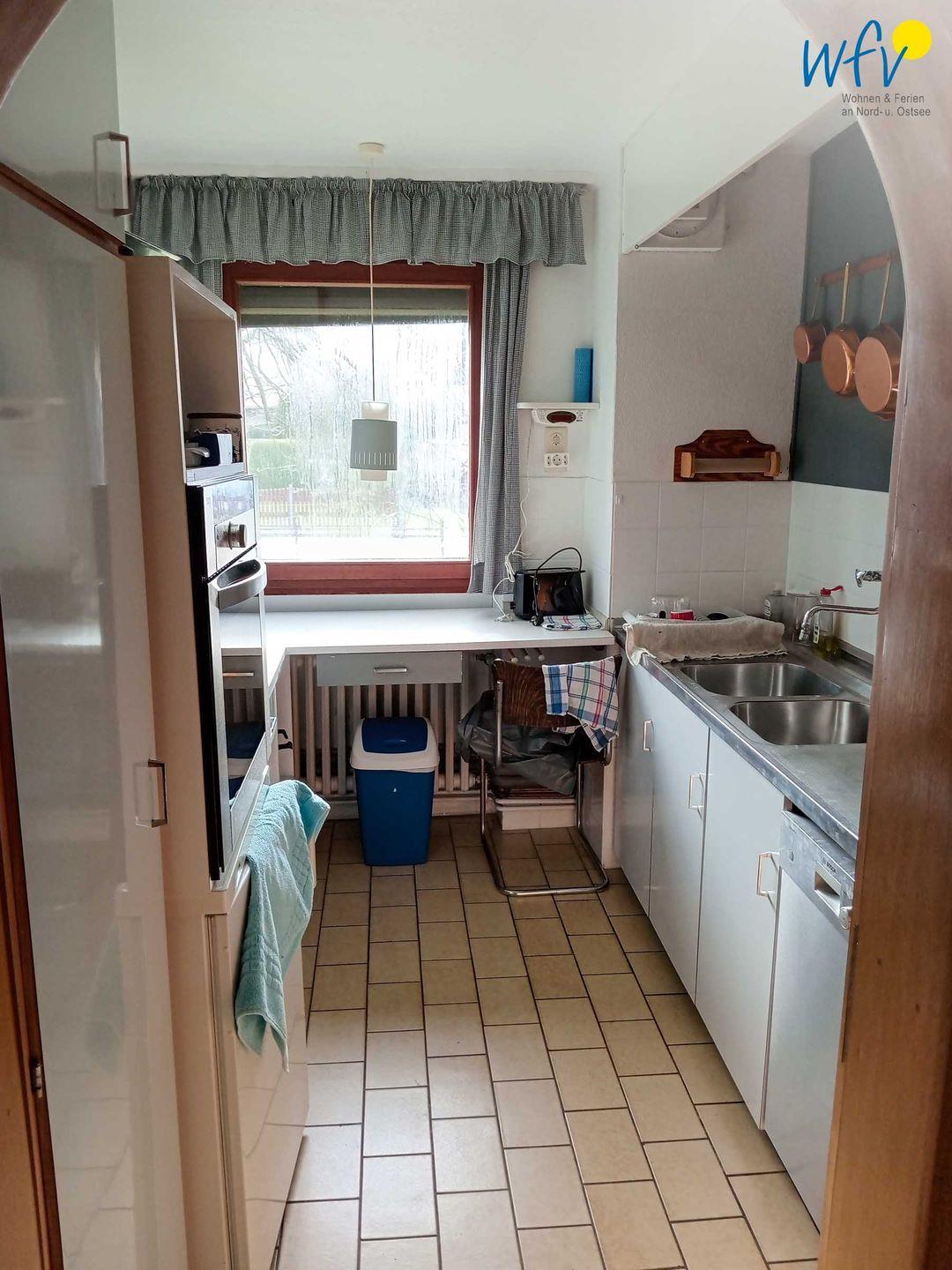 Das Ferienfrühstück, Snacks für den Ausflug oder das Abendessen lassen sich in der separaten Küche zubereiten, u.a. mit 4-Platten-Induktionsherd, Backofen, Mikrowelle, Kühlschrank mit Gefrierfach und Spülmaschine.