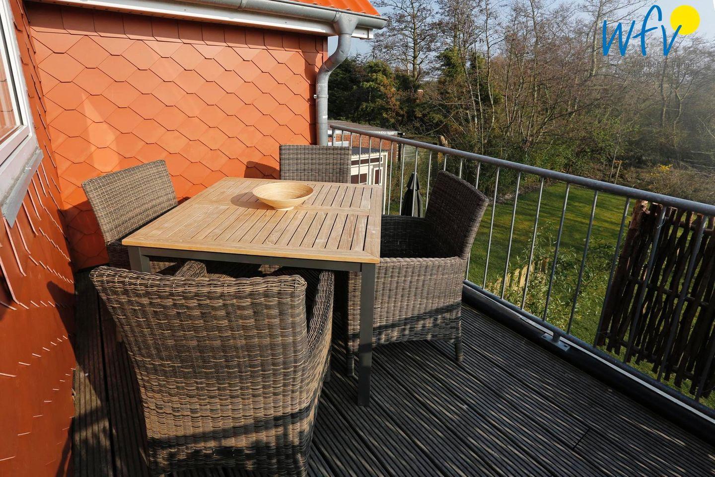 Nach Herzenslust entspannen können Sie natürlich auch bei Sonne und frischer Nordseeluft! Unsere Ferienwohnung "Neptun" verfügt über einen wunderschönen Balkon, der mit hochwertigen Rattan-Außenmöbeln, einem Teaktisch und einem Sonnenschirm ausgestattet ist. Vom Balkon aus haben Sie einen freien Blick ins Grüne und in den schönen Garten. Bei bestimmten Windrichtungen hören Sie sogar die Brandung der Nordsee!