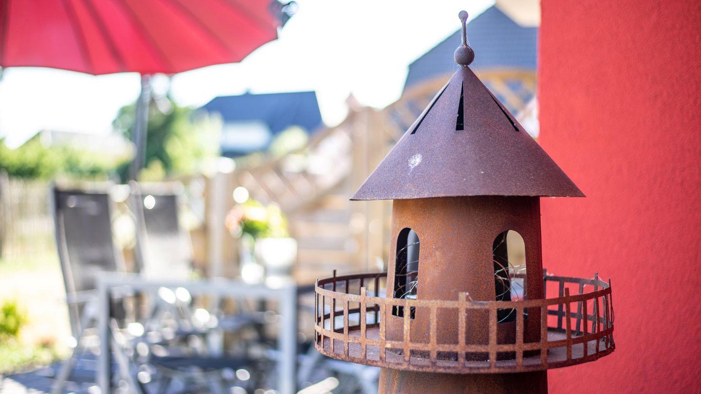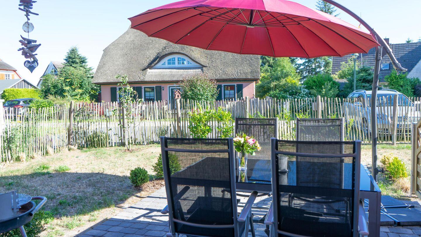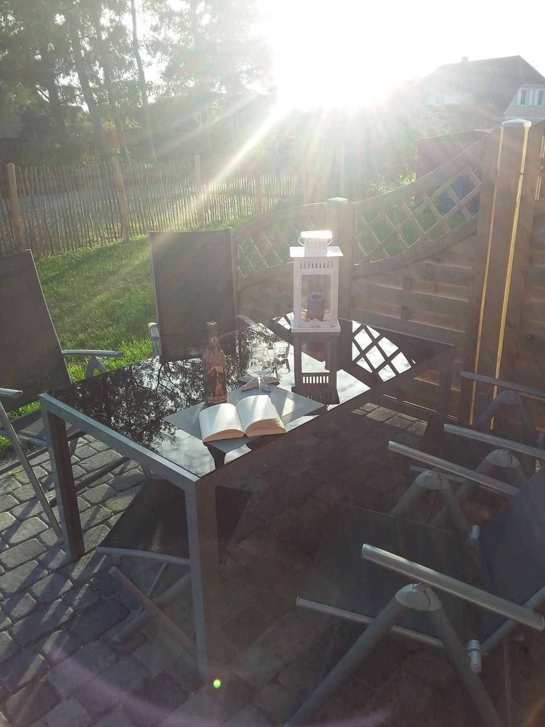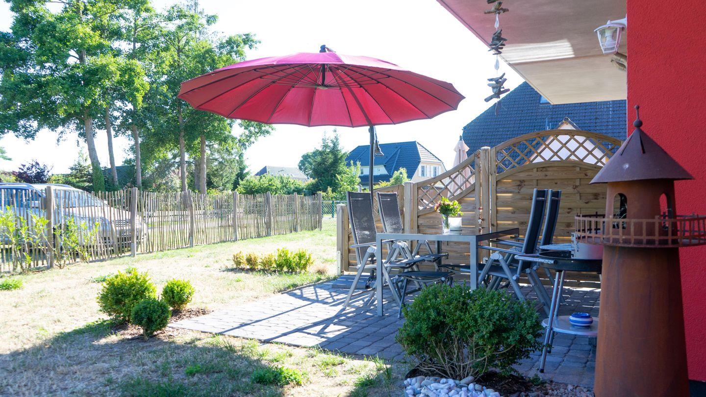 der Sauna- Nutzung in der FeWo) Die Terrasse ist mit Gartenmöbeln, Sonnenschirm