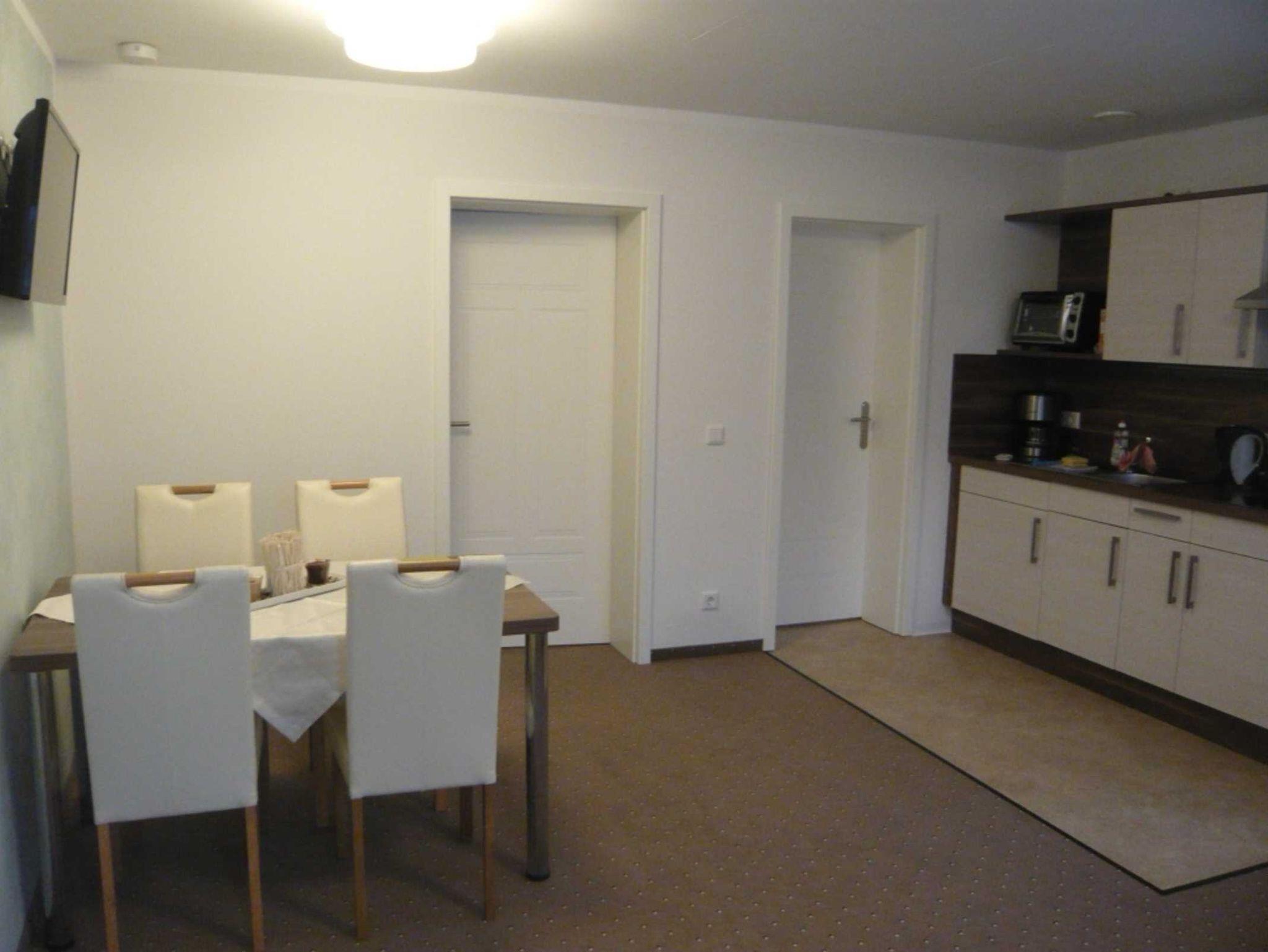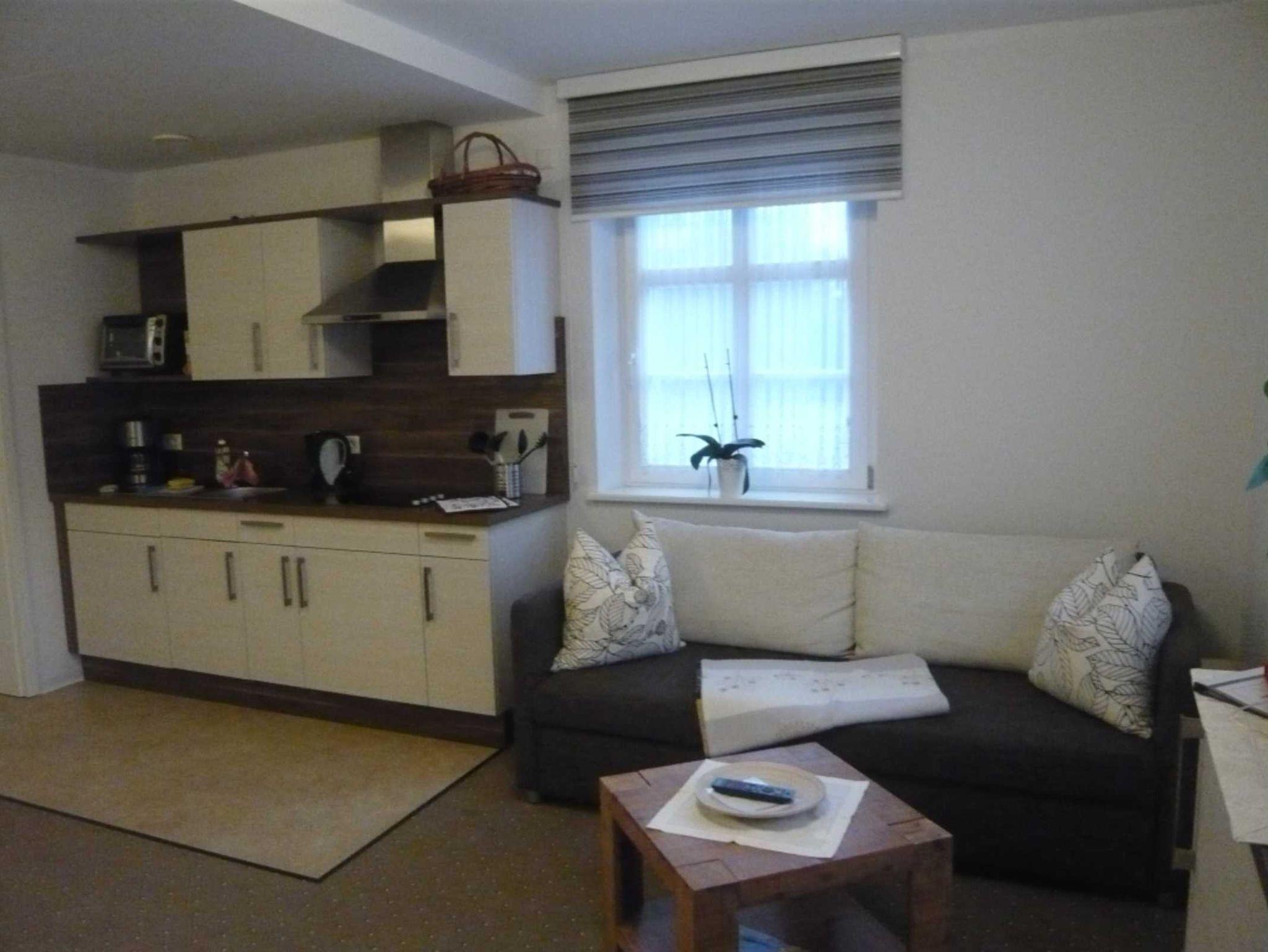 Diese Ferienwohnung befindet sich in der 1. Etage. Sie ist mit Teppichboden versehen und es ist eine Nichtraucherwohnung. Unsere Küchenzeilen sind komplett ausgestattet (Kühlschrank, Kaffeemaschine. Wasserkocher, Cerankochfeld und Minibackofen). Im Schlafzimmer befindet sich ein Doppelbett in der Größe 180x200 cm.