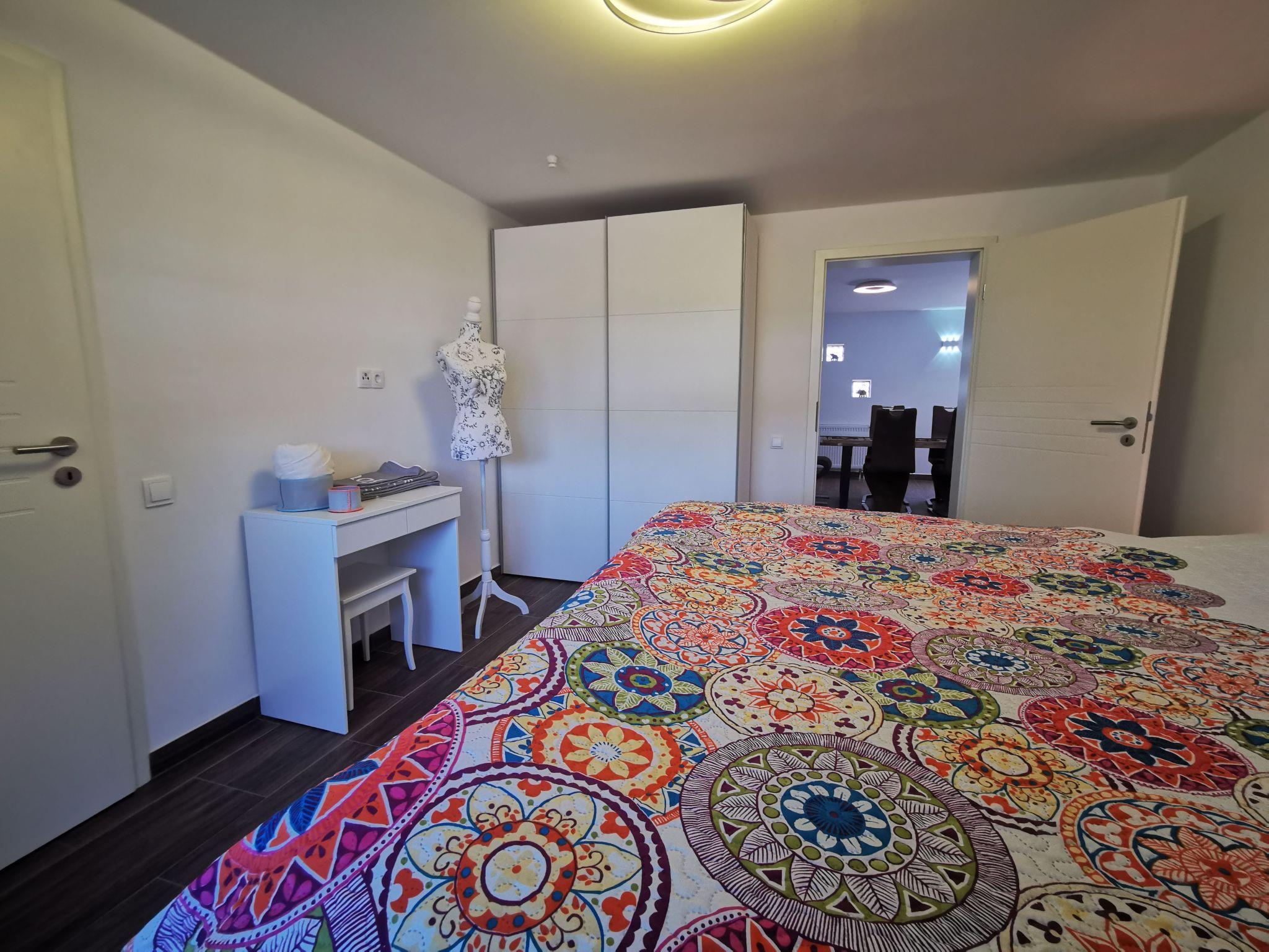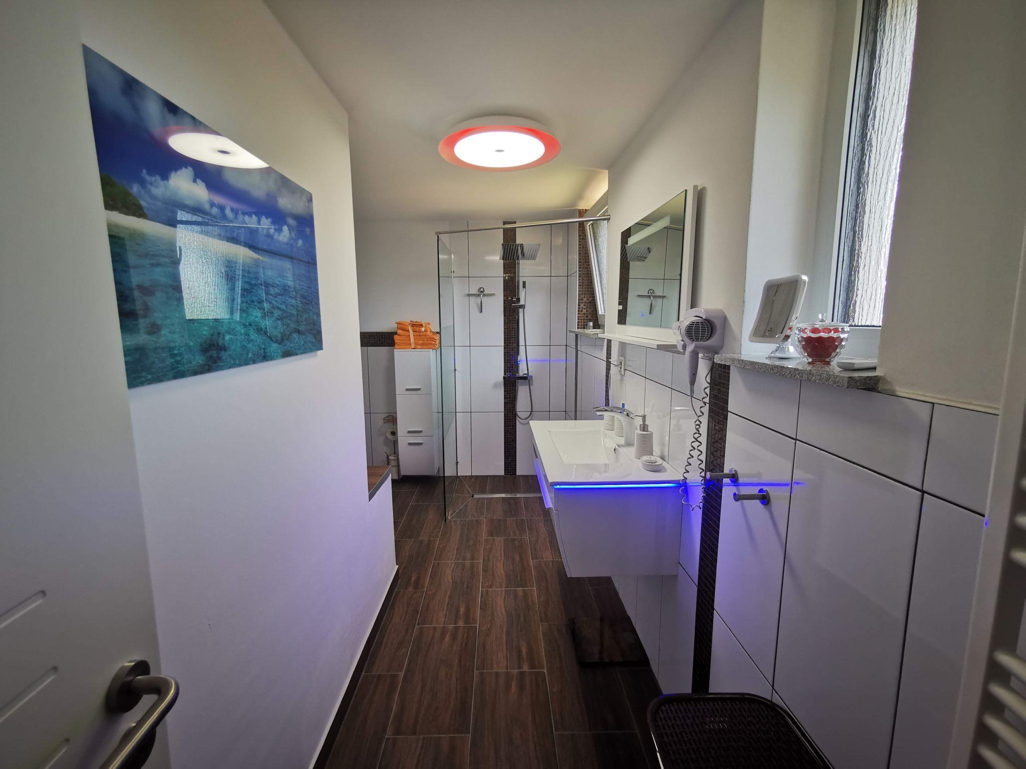 A small selection of books and some board games for adults and children are also available. The two modern bathrooms are equipped with towel radiators and walk-in rain showers. The beds in the two tasteful bedrooms are equipped with comfortable duvets and three different pillows for each bed. Spacious wardrobes provide ample storage space for your luggage and clothes.
