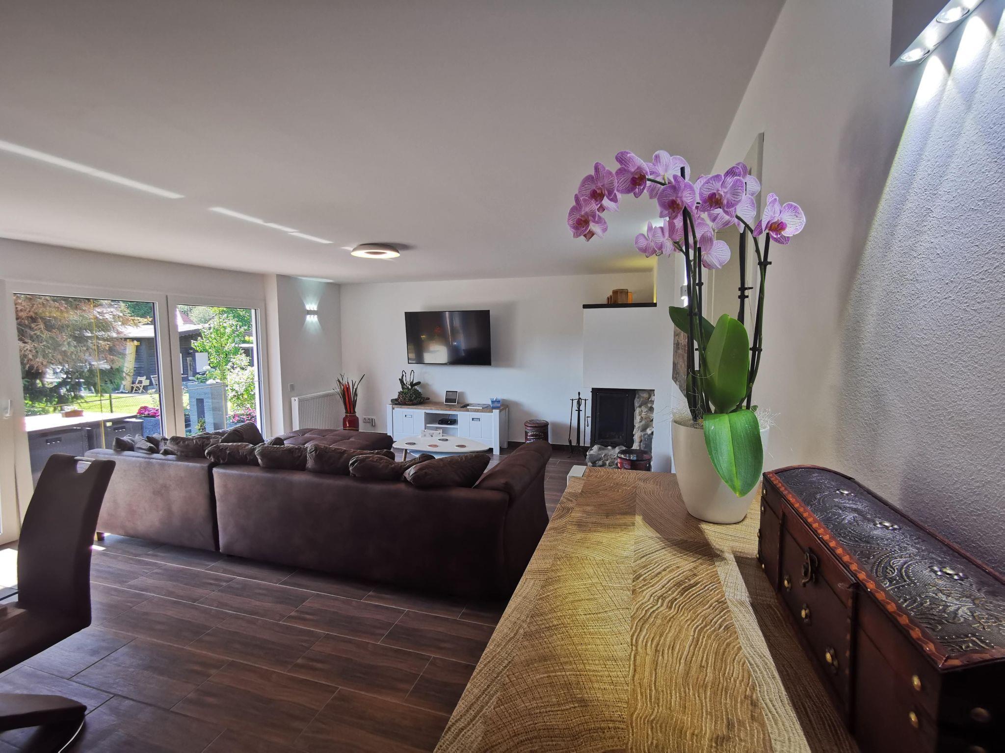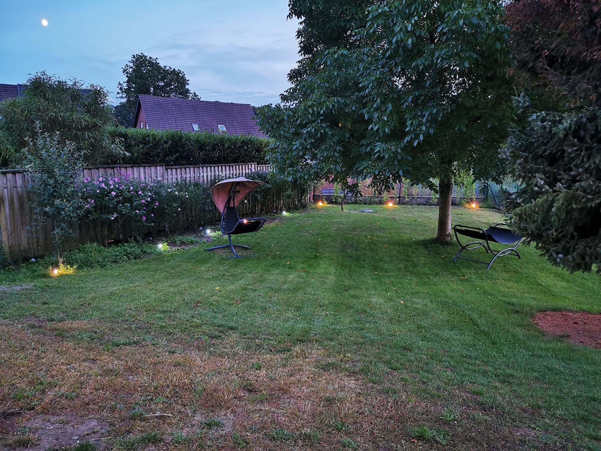 Our holiday home has a large garden with a beautiful terrace. The large, south-facing terrace invites you to sunbathe and offers a beautiful view of the surrounding area. Our fenced property is approx. 500 square metres in size. Comfortable garden chairs, a modern garden table, deckchairs and a high-quality awning guarantee a pleasant stay outdoors. A gas barbecue, including gas bottle, is also provided for you to enjoy the evenings on the terrace.