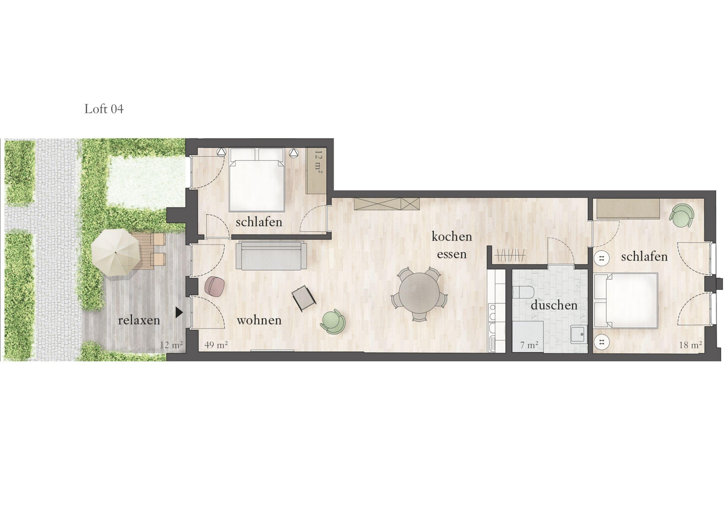 Die Ferienwohnung liegt im Erdgeschoss der ehemaligen Färberei der Kammgarnspinnerei und zeichnet sich durch ihre geräumige und großzügige Raumaufteilung (86m²) aus. Sie ist in Gänze barrierefrei und somit auch uneingeschränkt rollstuhlgeeignet. Die gut geschnittene, viel Platz bietende und komfortabel ausgestattete Loft-Ferienwohnung ist für 4 Personen geeignet. Die Bereitstellung von Kinderreisebetten und Hochstühlen ist nach Vorbestellung jederzeit möglich.