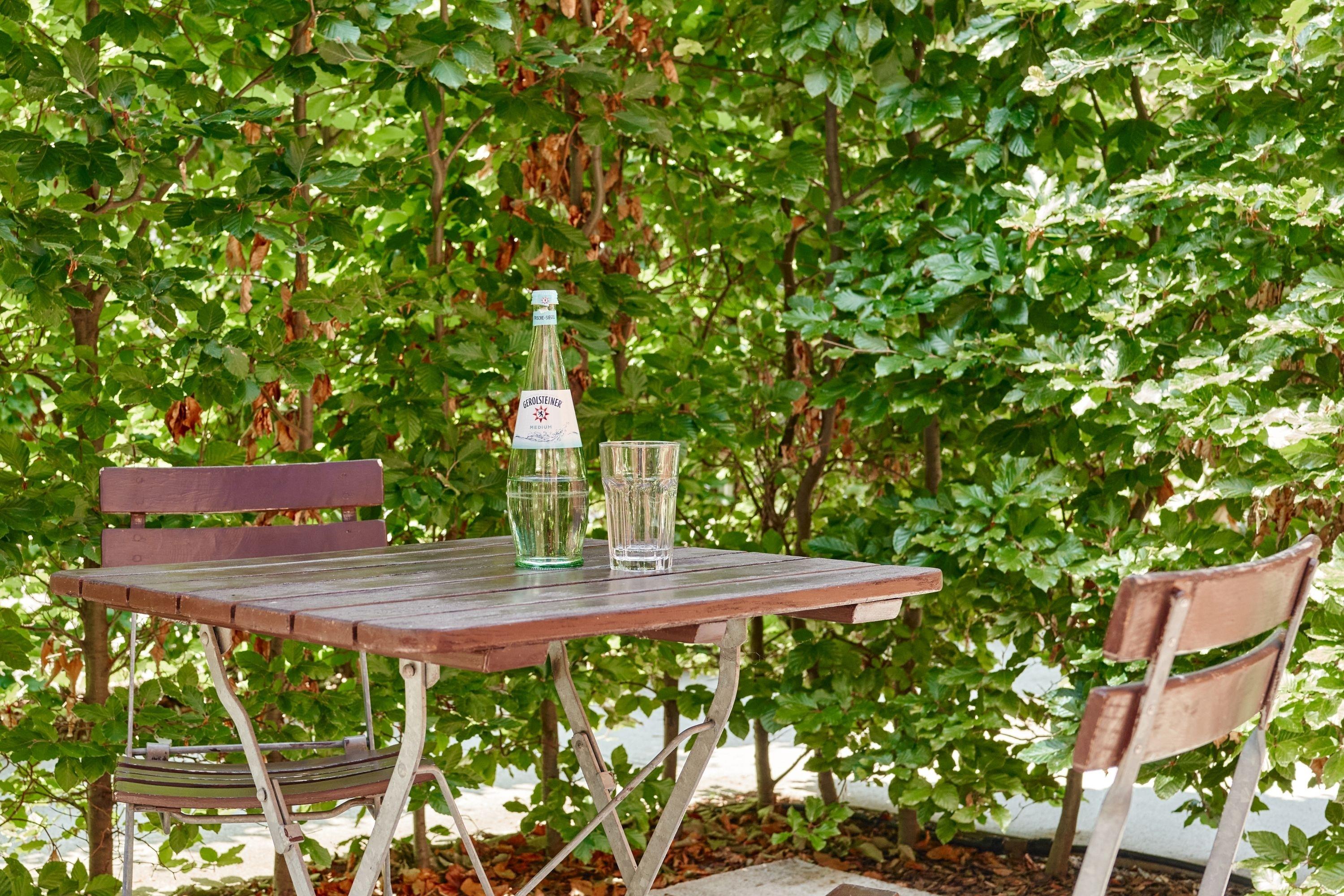 Zu dieser Ferienwohnung gehört ein individueller, mit Hecken umpflanzter Terrassenbereich. Die bayerisch rustikalen Biergartentische und -stühle laden zu gemütlichen Stunden an der frischen Havelluft ein.