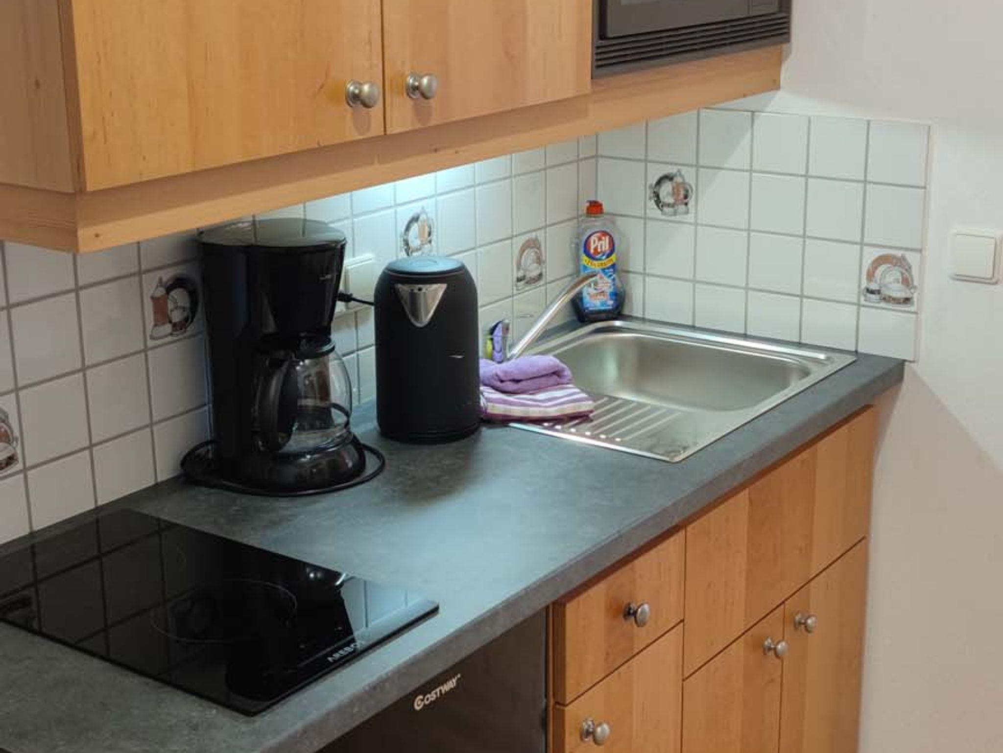 Damit sich unsere Gäste auch selber eine Kleinigkeit zubereiten können, hat das Zimmer eine eigene Küchenzeile mit ausreichend Küchenutensilien.