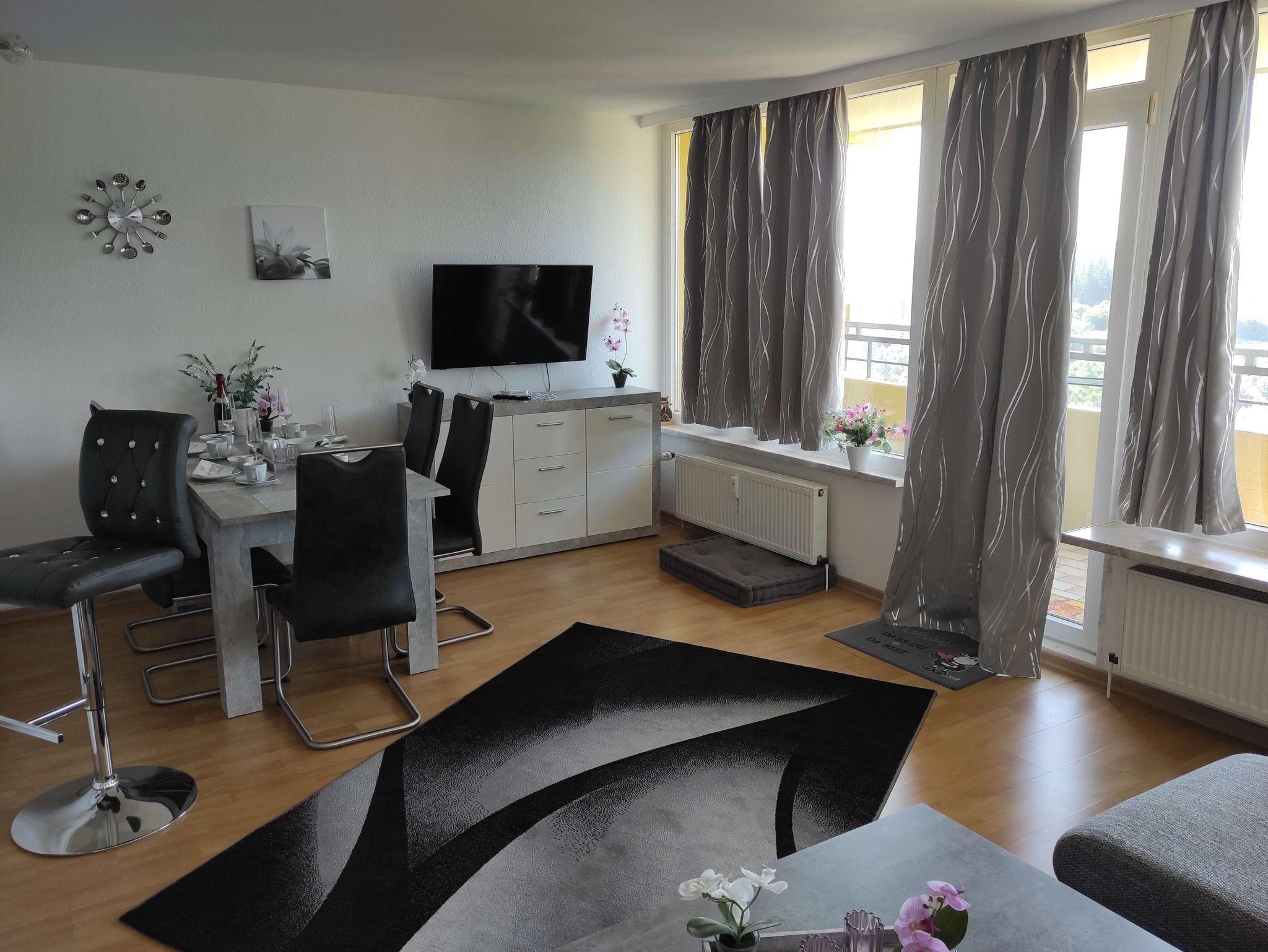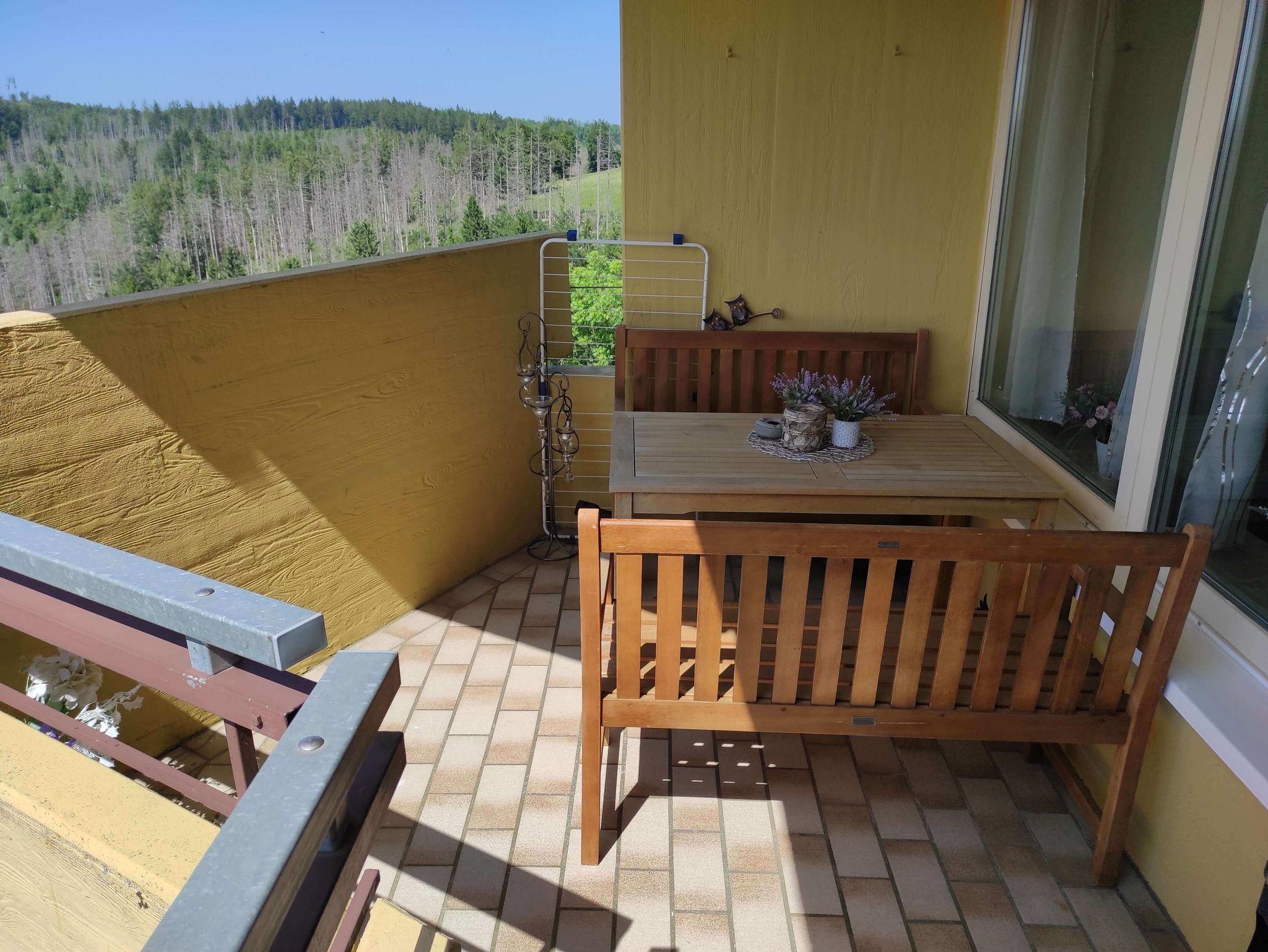 Apartment Abendsonne App 450 in der 5. Etage mit großem Westbalkon, befindet sich in der Apartmentanlage Panoramic Hohegeiß (malerisches Bergdorf bei Braunlage) im Oberharz.