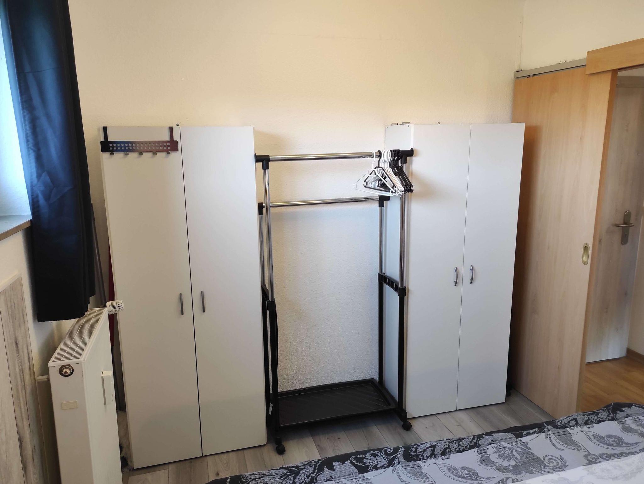 Das separate Schlafzimmer mit großem und höheren Doppelbett bietet weiteren 2 Personen Platz, ebenfalls stehen dort Kleiderschränke zur Verfügung.