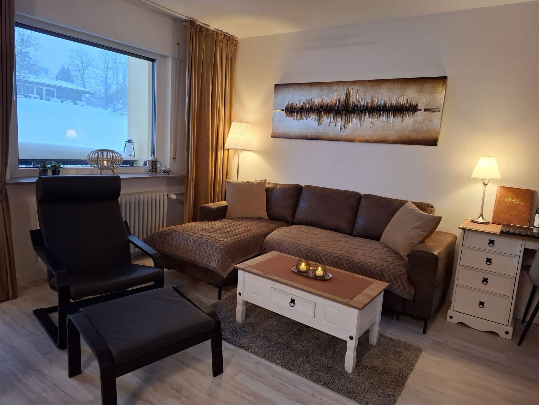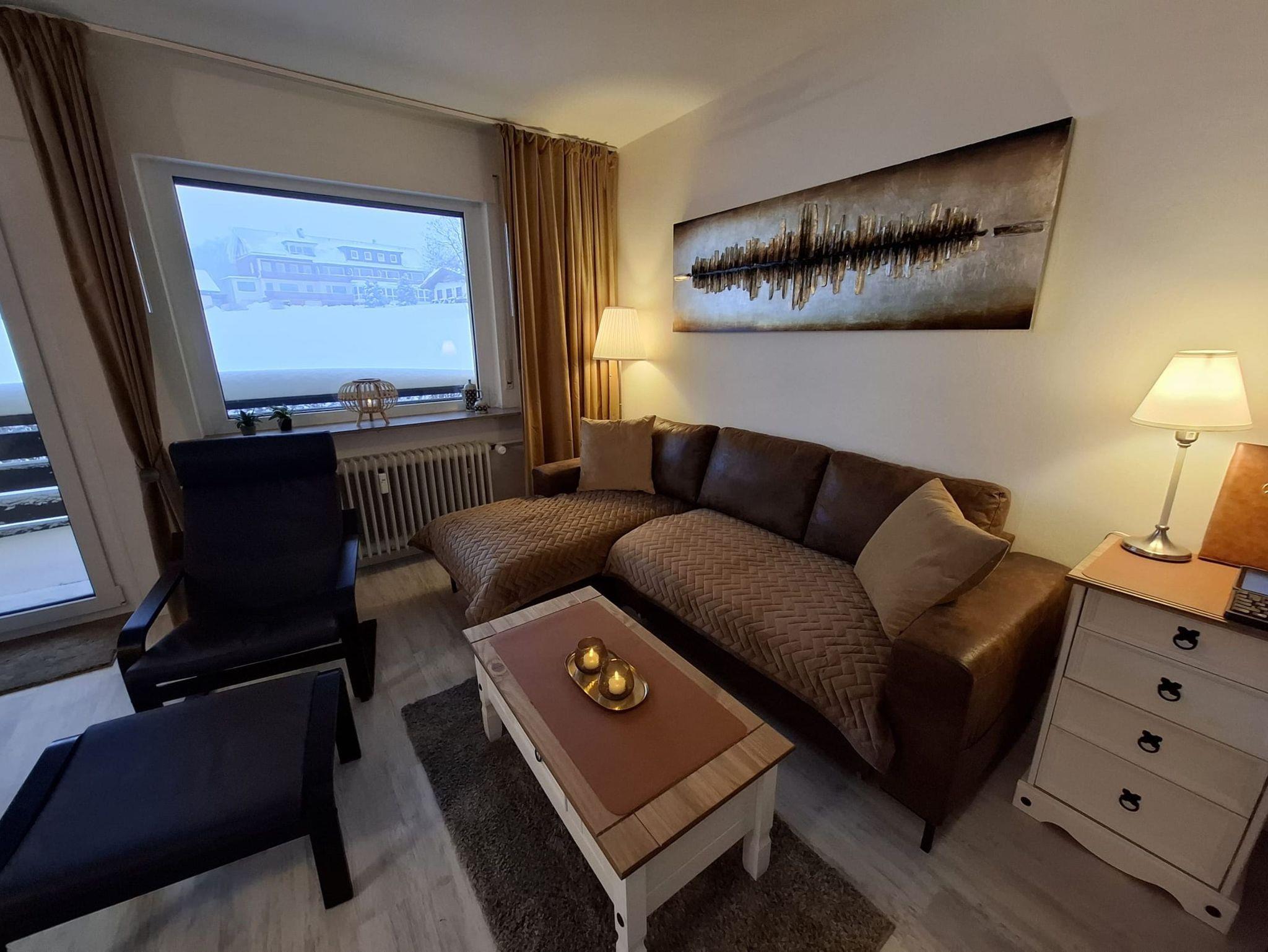 Die Ferienwohnung Harzer Brockenblick in Hohegeiß liegt oberhalb des Kurparks. Das Appartement befindet sich in der Hochparterre und ist für 2 Gäste ausgerichtet. Hunde sind sehr willkommen! Die gesamte Wohnung wurde 01/2026 frisch renoviert und das Wohnzimmer wie auch unser Balkon mit neuen Möbeln ausgestattet. Bad und Küche sind neu. Die Ferienwohnung ist komplett mit Highspeed-WLAN ausgeleuchtet. Die 55 und 43 großen Smart TV bieten ihnen Streaming - Möglichkeiten über die bekannten Plattformen Netflix, Prime, Joyn usw. Von dem Balkon aus hat man einen herrlichen Blick auf die naturbelassenen Bergwiesen. Zusätzlich haben sie einen kleinen Home Office Platz mit Monitor, Tastaturn und Maus mit einem C-Anschluss an ihren Laptop. Die Anlage bietet zwei Saunen und einen Hobbyraum zum Tischtennisspielen. Im Garten der Wohnanlage befindet sich eine schöne Sitzgelegenheit mit Fernsicht auf den Brocken und Wurmberg.