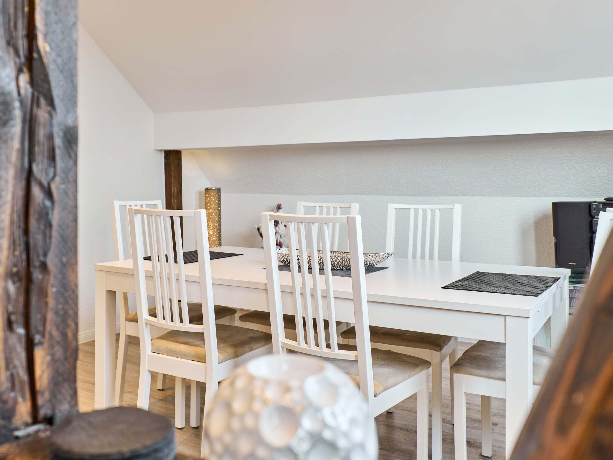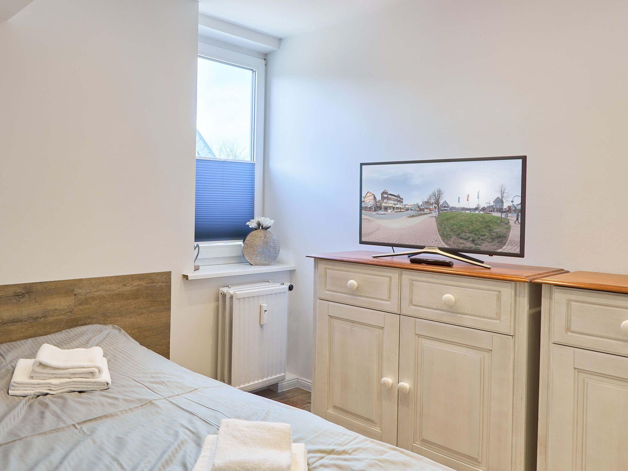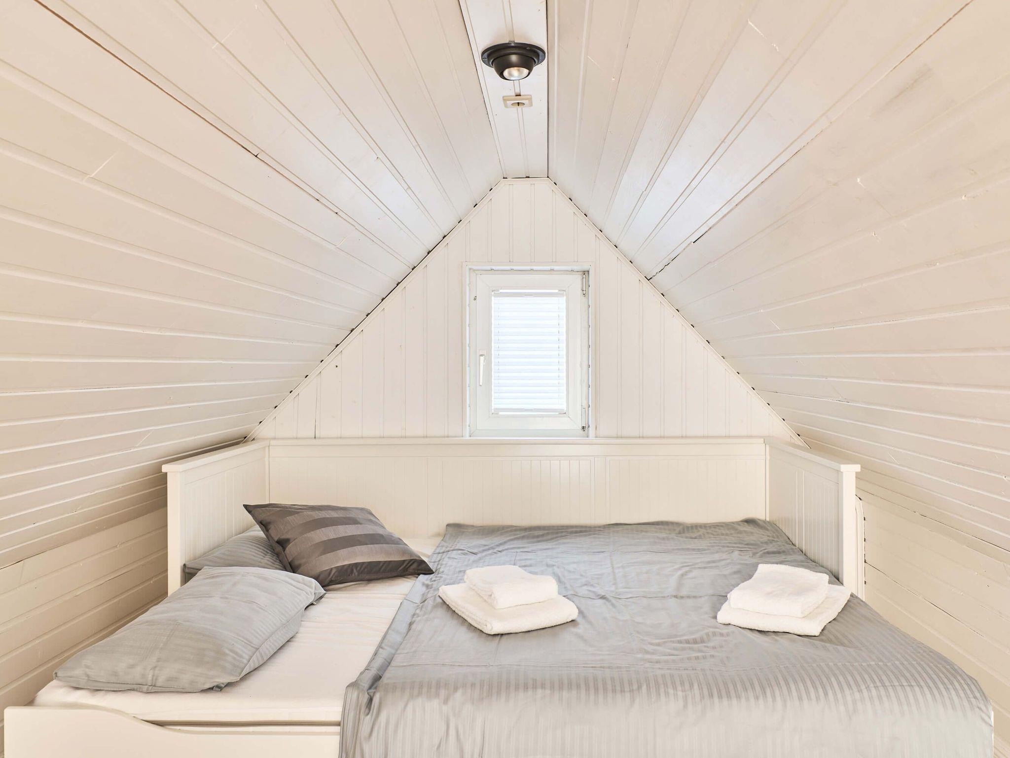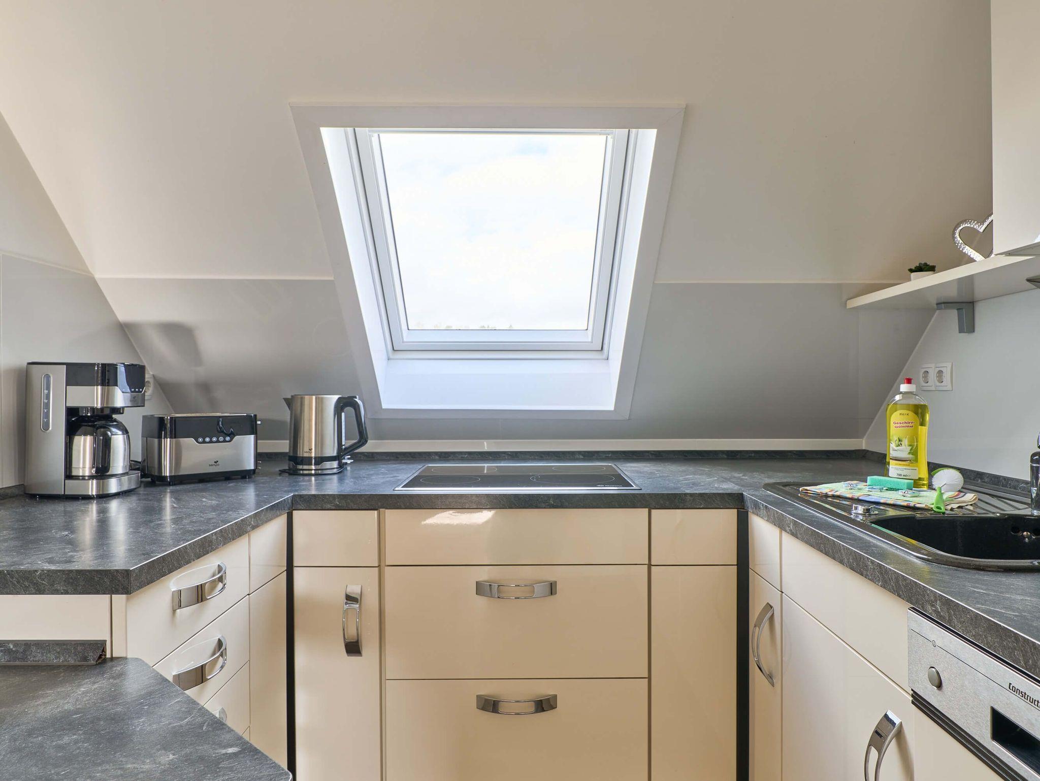 In den zwei separaten Schlafzimmern können Sie ausschlafen, um gut gelaunt in Ihren Urlaub zu starten. Den Schlafloft im Dachgeschoss erreichen Sie über die Raumspartreppe im Flur. Des Weiteren finden Sie auch einen großen Kleiderschrank und eine Kommode in der geräumigen Ferienwohnung, sodass es auch genügend Platz für Ihre Urlaubsgarderobe gibt.