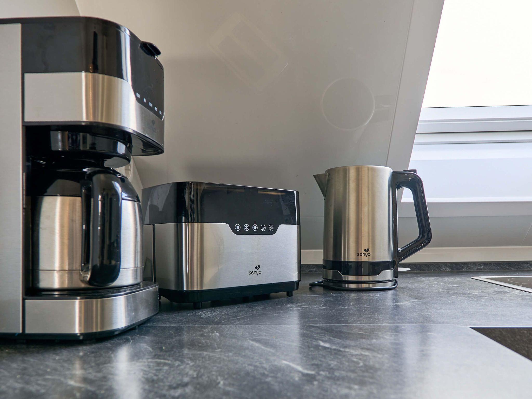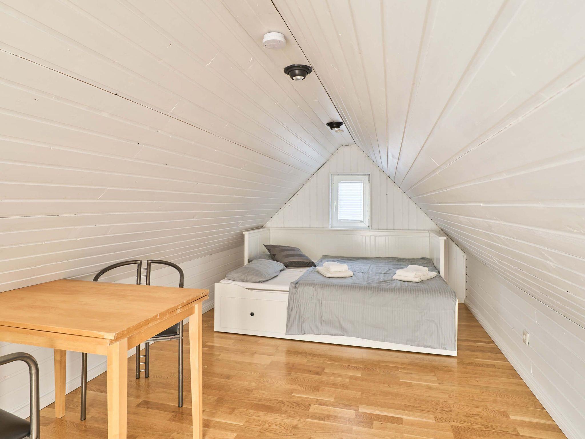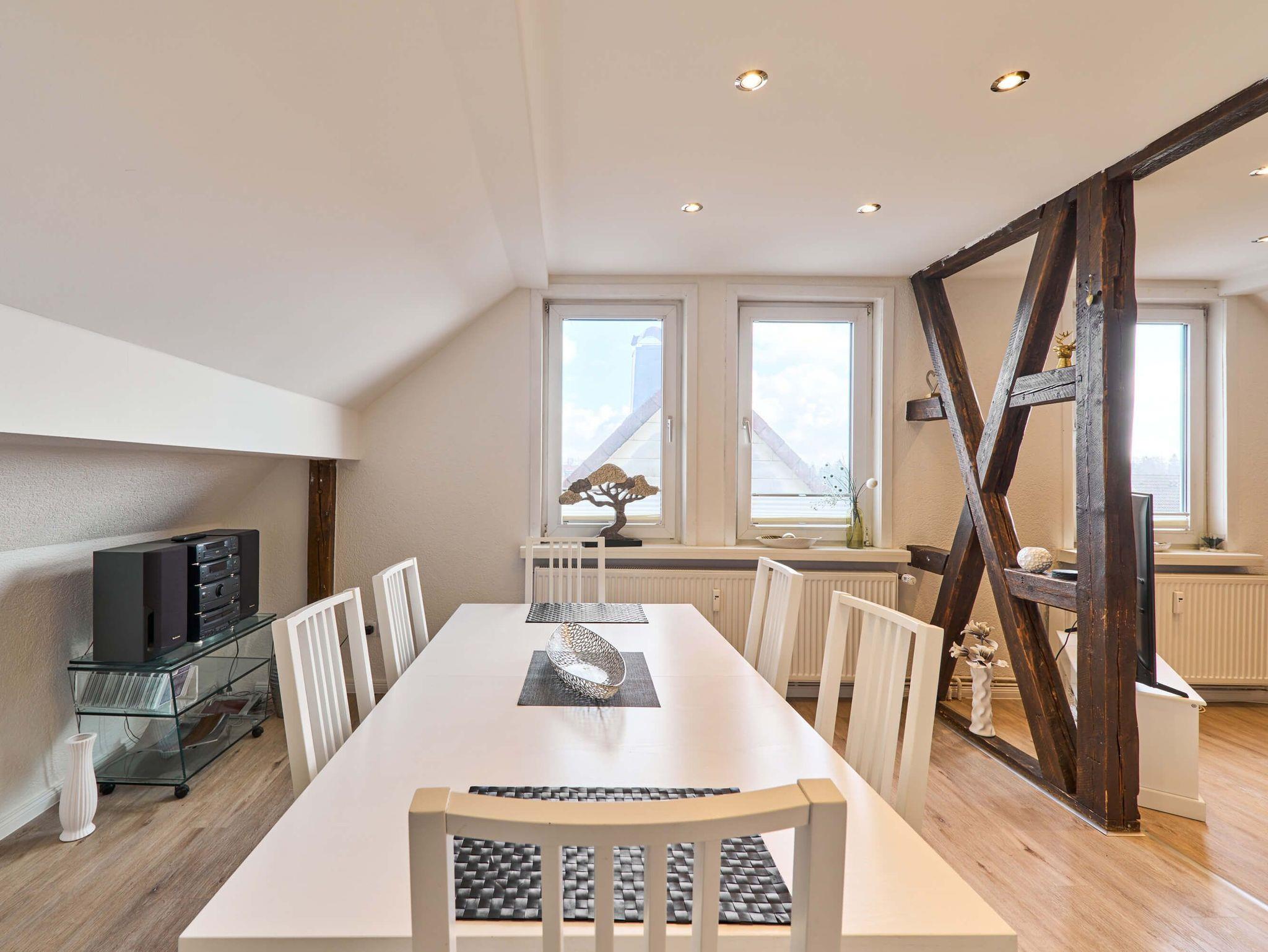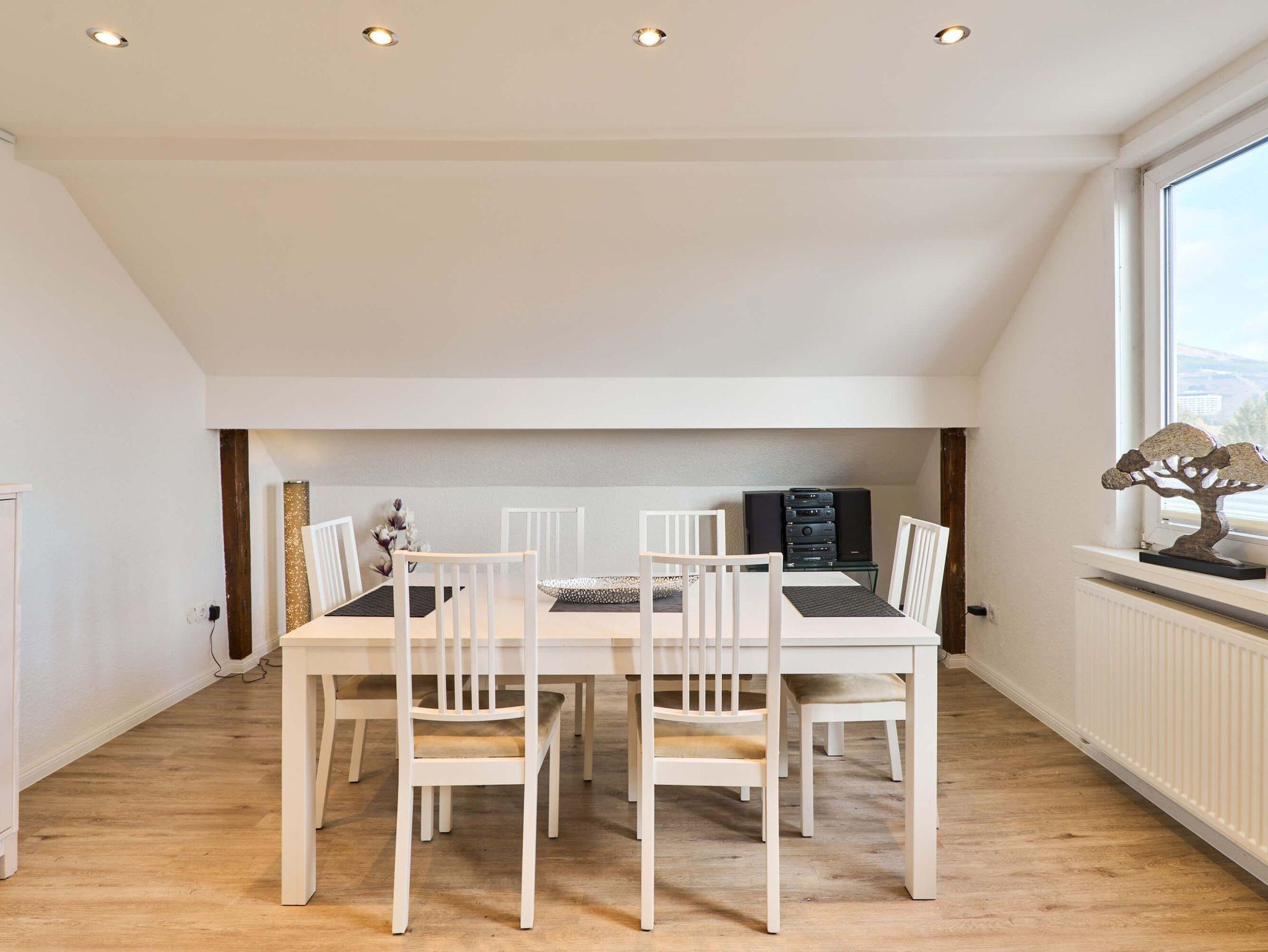 In den zwei separaten Schlafzimmern können Sie ausschlafen, um gut gelaunt in Ihren Urlaub zu starten. Den Schlafloft im Dachgeschoss erreichen Sie über die Raumspartreppe im Flur. Des Weiteren finden Sie auch einen großen Kleiderschrank und eine Kommode in der geräumigen Ferienwohnung, sodass es auch genügend Platz für Ihre Urlaubsgarderobe gibt.