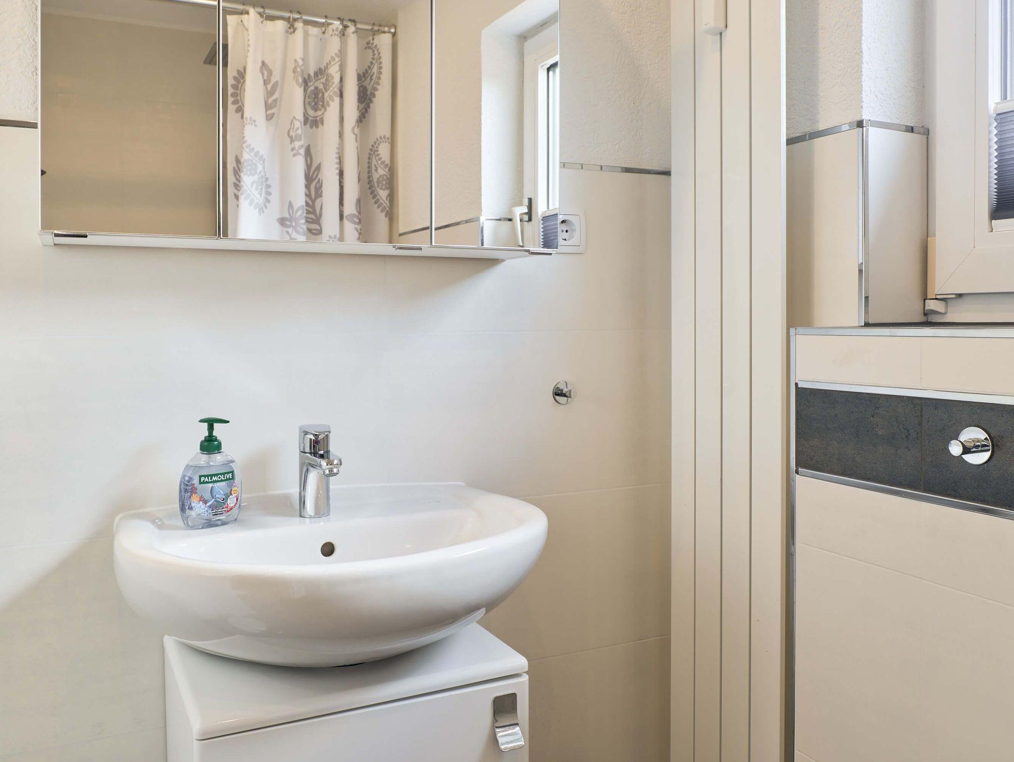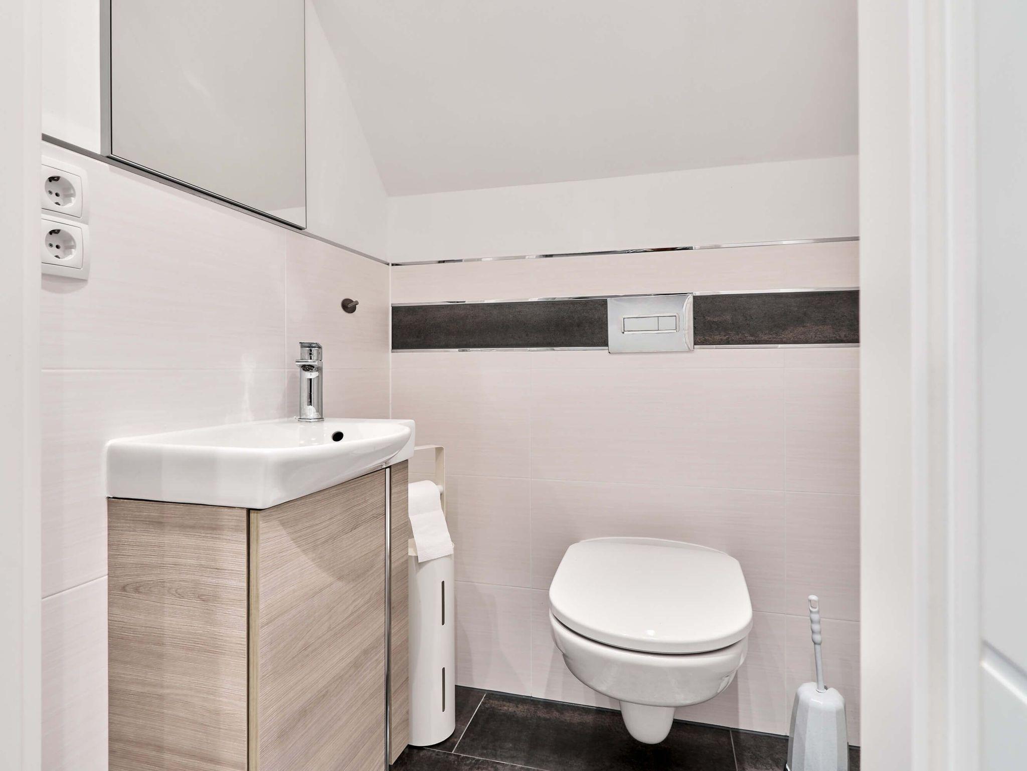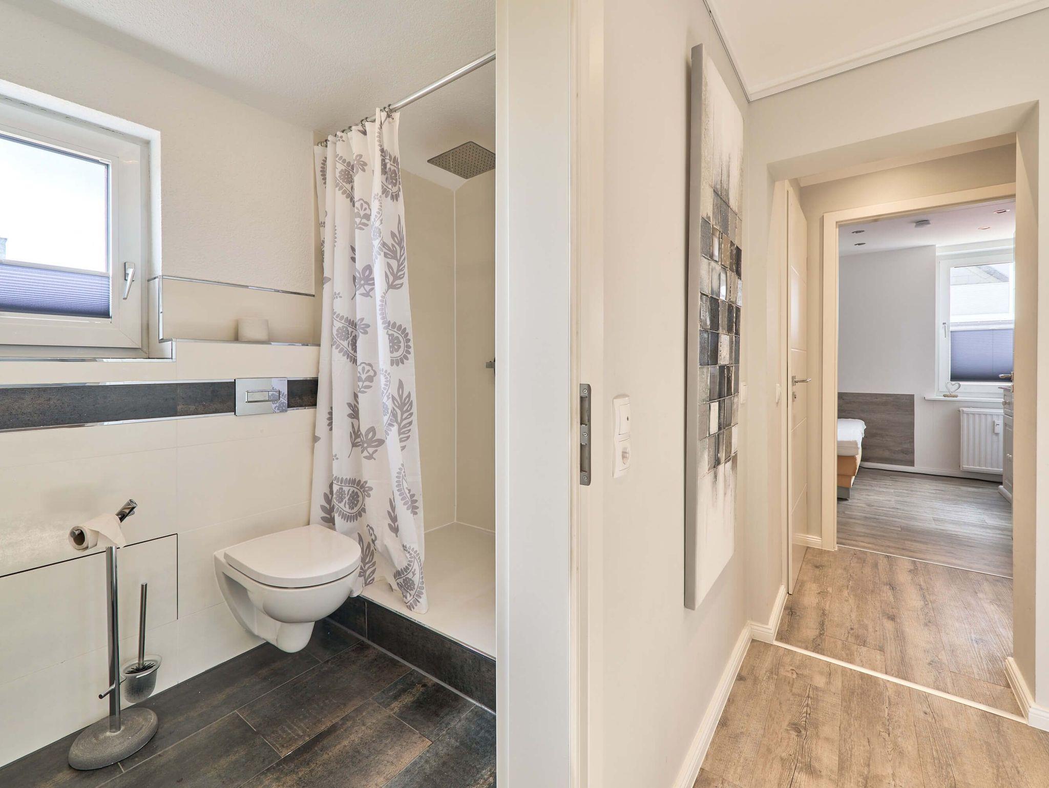 Nach einem schönen langen Spaziergang können Sie sich dann in dem modernen und hellen Badezimmer bei einer heißen Dusche entspannen. Darüber hinaus gibt es auch noch ein separates WC.
