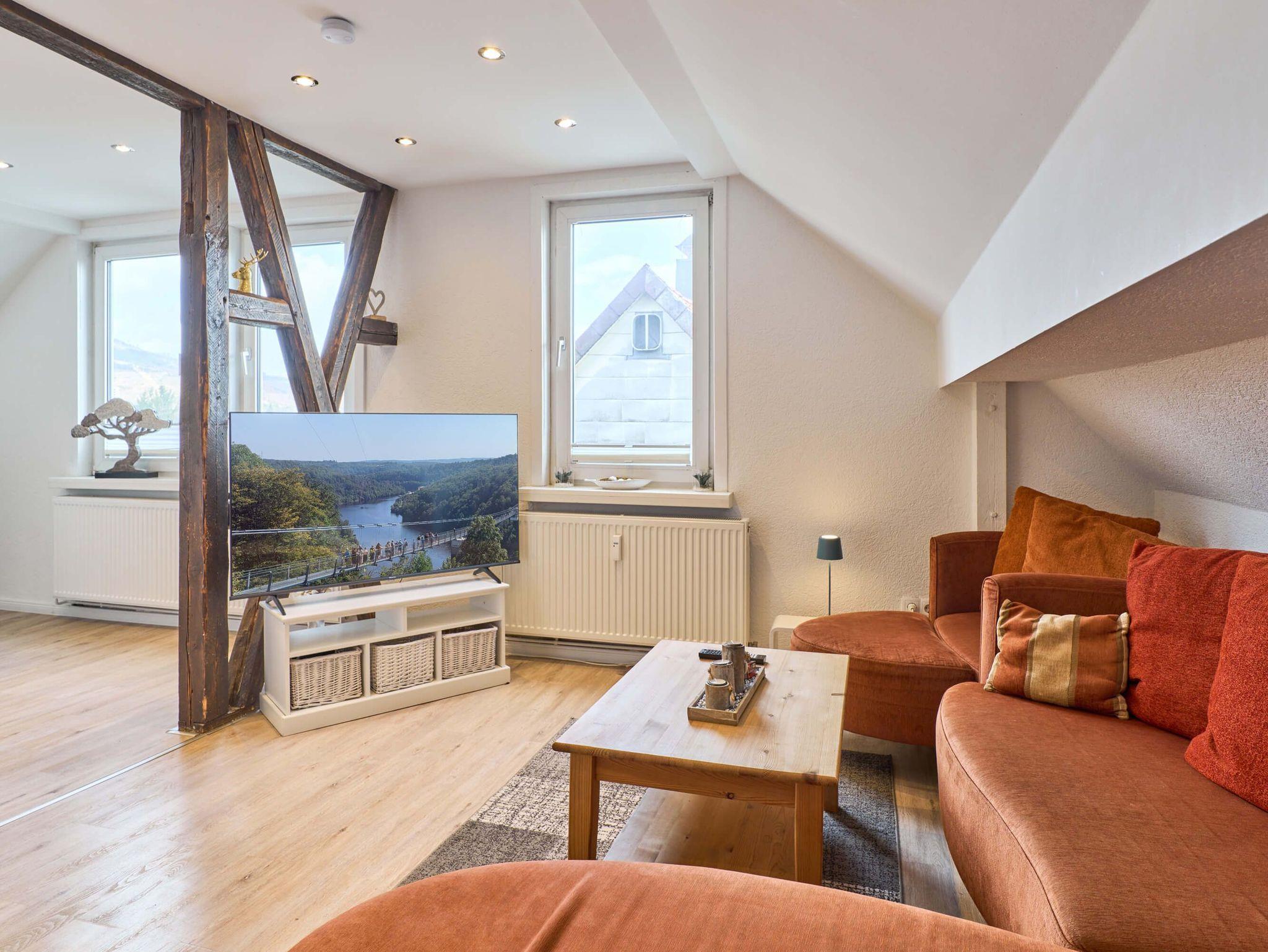 Genießen Sie an dem großen Esstisch Ihr Frühstück und planen Sie die vielen spannenden Aktivitäten, die Sie im Harz unternehmen können. Auch abends können Sie den Tag mit einem Glas Wein oder einer Spielepartie auf der großen gemütlichen Couch Revue passieren lassen.