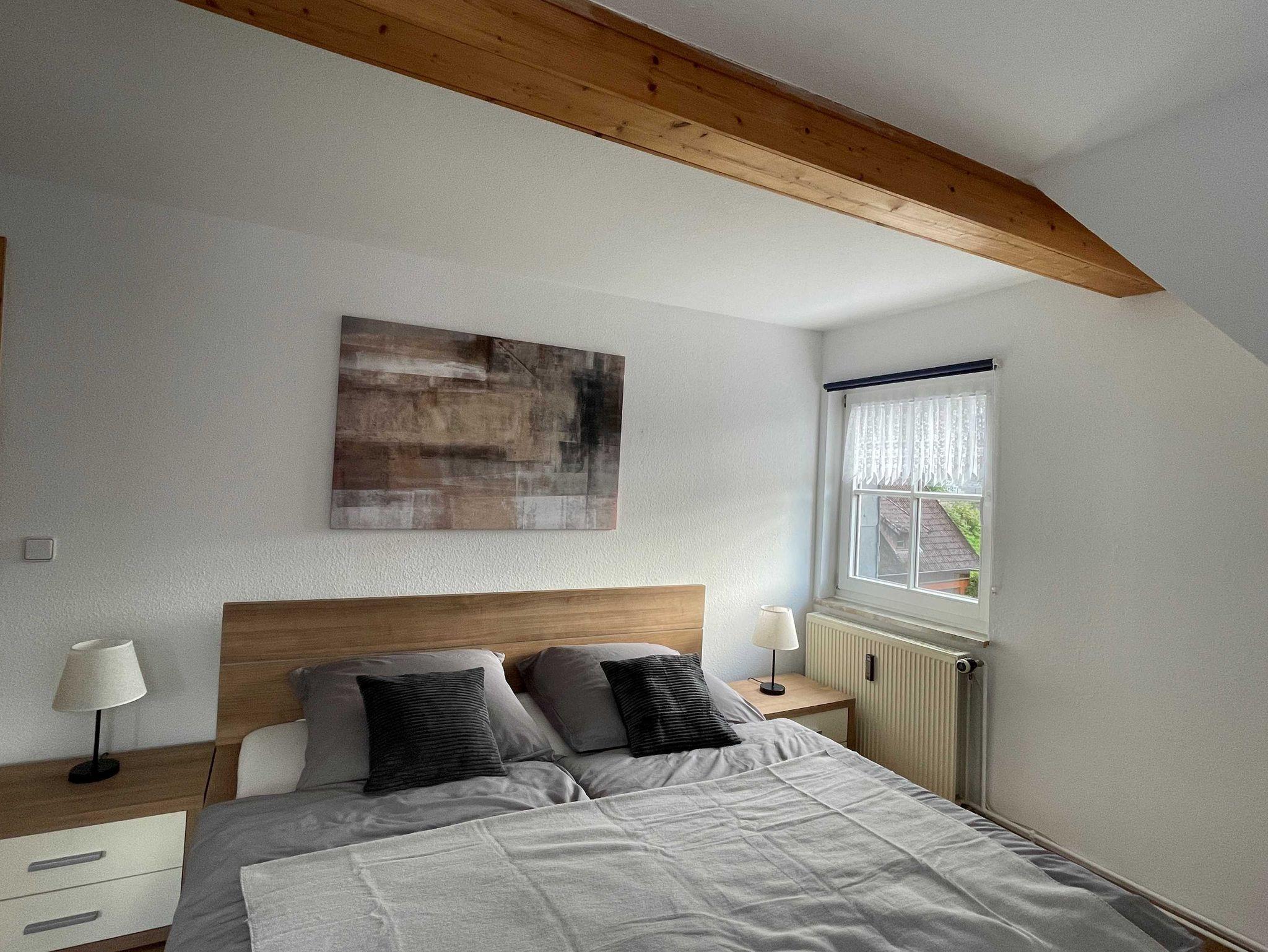 Die Ferienwohnung 1 befindet sich im 2.OG der Unterkunft. Sie verfügt über 2 Schlafzimmer, eines der beieden Schlafzimmer verfügt über ein angrenzendes Badezimmer. Insgesamt verfügt die Ferienwohnung über 2 Badezimmer. Des Weitren verfügt die Unterkunft über eine vollausgestattete Küche mit Essbereich, sowie ein großes Wohnzimmer mit Leseecke und Schlafsofa für zwei Personen.