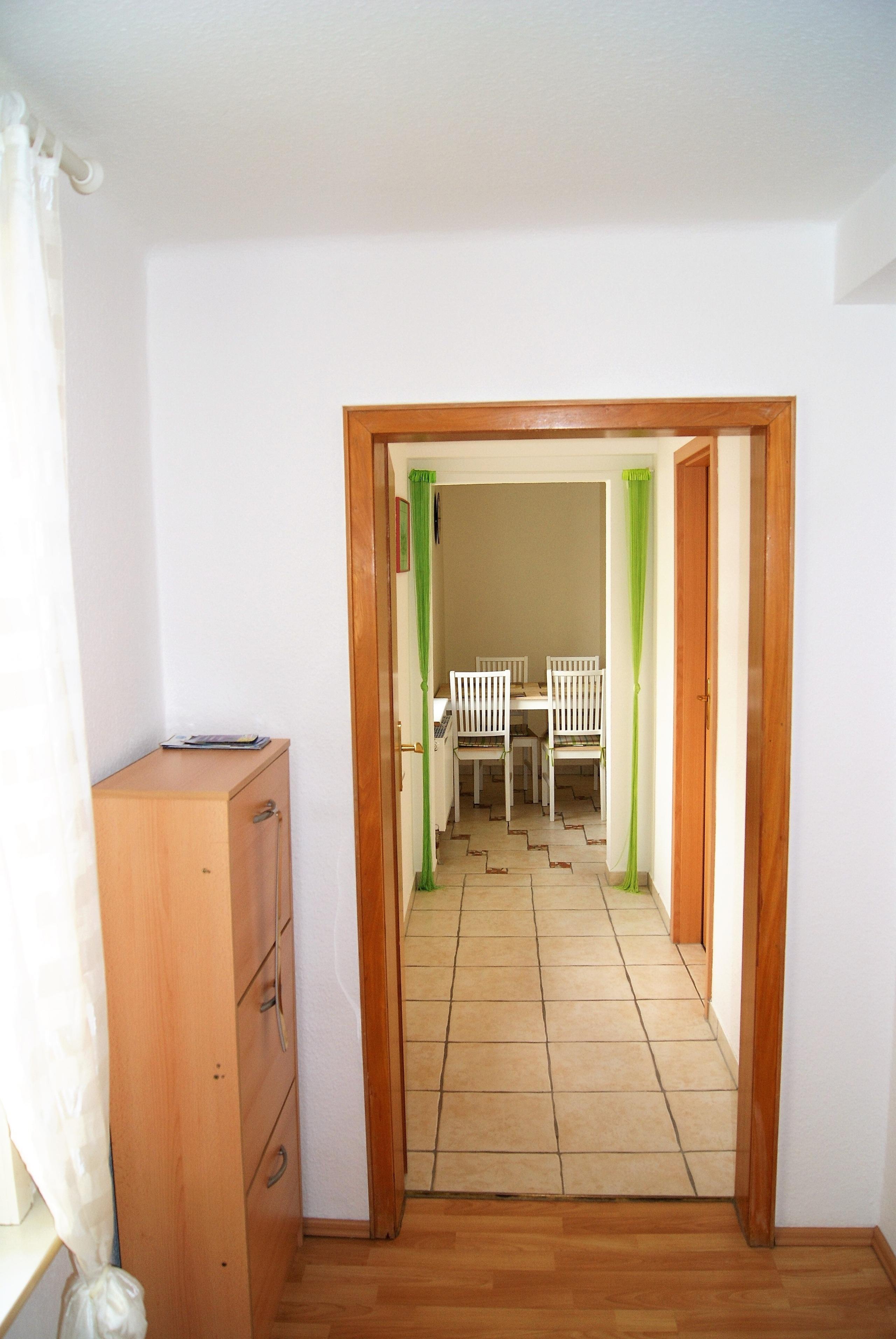 Die Wohnung verfügt über 2 Schlafzimmer, jedes Schlafzimmer hat ein Doppelbett und ein Einzelbett. Das Sofa im Wohnzimmer bietet weiteren Platz für 1 Person. Ein Badezimmer mit Badewanne, ein großes Wohnzimmer mit Essbereich und eine voll ausgestatteten Küche auch mit Essbereich. Auf unserer Gemeinschaftsterrasse hinter dem Haus kann auch gegrillt werden oder einfach nur zum entspannen. Nicht zu vergessen das W-LAN