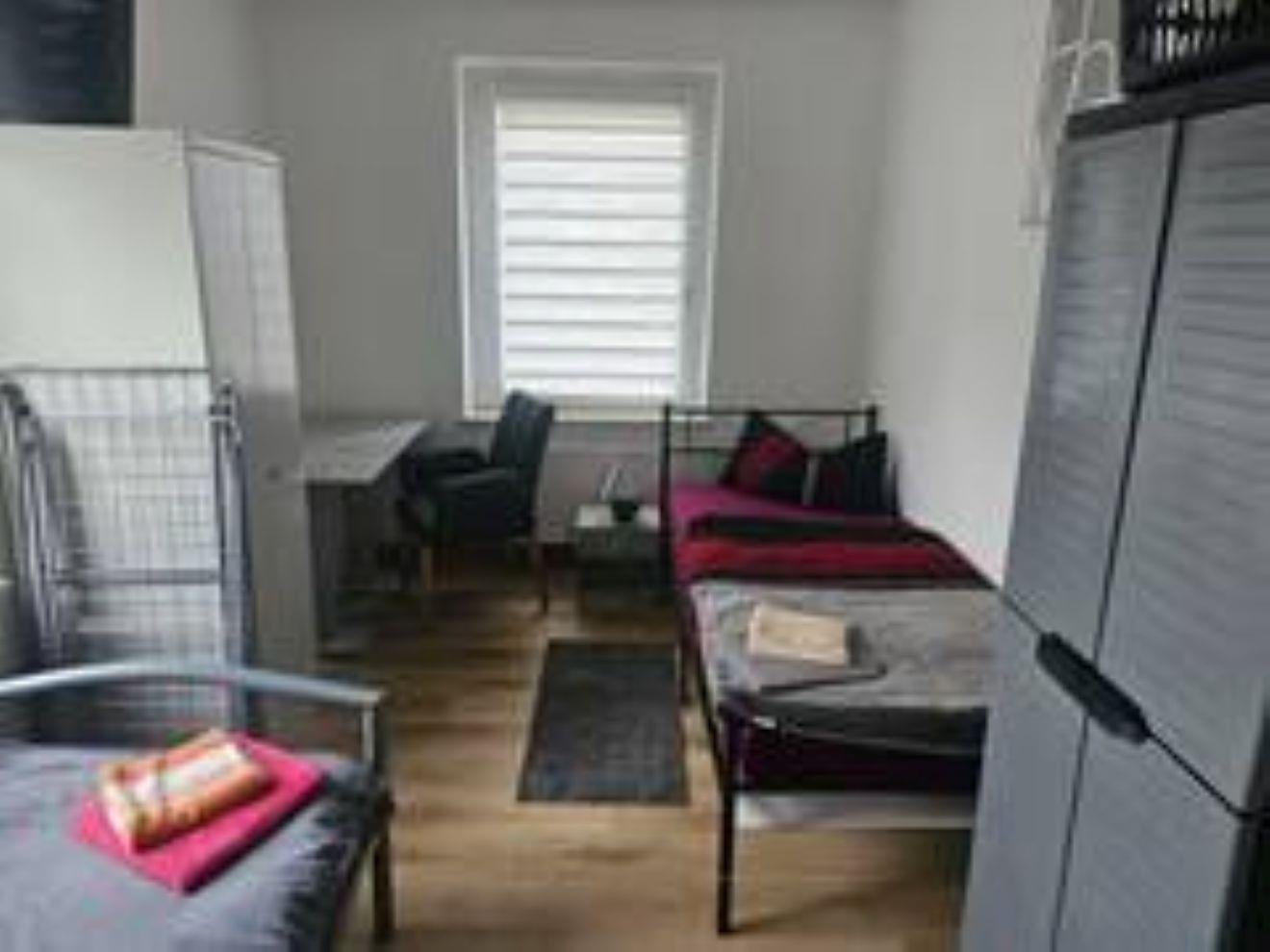 Jedes Zimmer verfügt über 1 oder 2 Einzelbetten 90x200 mit H4 Taschenfederkernmatratze, Kleiderschrank, Nachttischrank mit Nachttischlampe, Schreibtisch + Stuhl, Wäscheständer , Mülleimer.