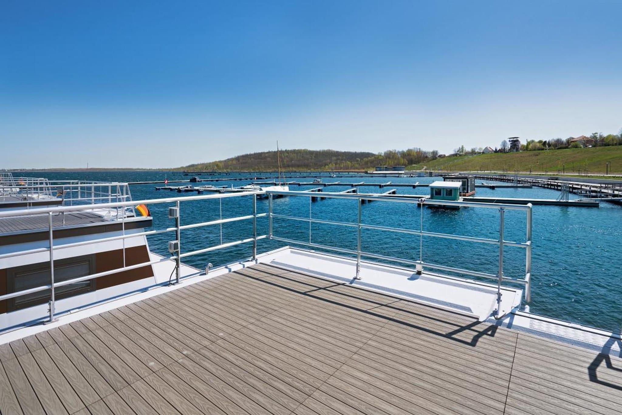 Denne store husbåd "Familie & Venner" byder på plads til op til 4 personer og masser af hyggeligt og maritim flair. Nyd din ferie med hele familien eller tilbring afslappende dage med dine venner langt væk fra stress og hverdag. Denne stationære husbåd er et flydende feriehus og har fast kaj på Geiseltalsee i havnen i Braunsbedra i det sydlige Sachsen-Anhalt. Alle, der nyder at være på vandet og nyde den maritime flair midt i Tyskland, kan tage på ferie her. Frem for alt betyder livet på en husbåd at være direkte og i harmoni med naturen. Når vejret er godt, kan du nyde solen på terrassen eller på den store solterrasse. I dårligt vejr tilbyder den klimatiserede og meget komfortabelt indrettede husbåd med sine tre indvendige værelser alle gæster nok plads og muligheder for at trække sig tilbage. Glasfacaderne i opholds- og spiseafdelingen forstærker følelsen af frihed og nærhed til naturen og får husbåden til at fremstå lys og venlig – men kan til enhver tid skygges efter behov. Der er et badeværelse med separat toilet. Derudover sikrer opvarmningen en hyggelig atmosfære ombord selv på kolde dage. Højdepunkter inkluderet: WiFi, alle forbrugsbaserede energiomkostninger Aktiviteter i nærheden: Geiseltalsee er den største kunstige sø i Tyskland med sine 19 km² og er en del af Geiseltaler søkompleks. Her finder du uendelige muligheder for at dyrke vandsport. Du kan lave bådture med forskellige passagerskibe, sejle og dykkerture. Men der er også en række muligheder på land med cykeludlejning til den 25 km lange cirkulære rute, vinsmagning og strande, der inviterer til at blive hængende. Mobilitet: Ikke egnet til personer med begrænset mobilitet.