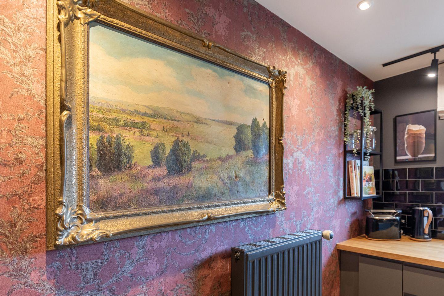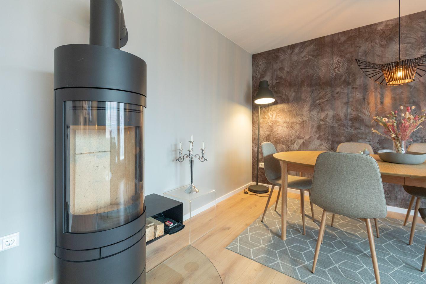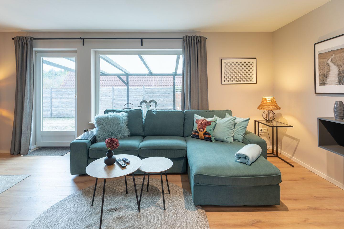 Entdecken Sie unser charmantes Ferienhaus, das mit seinem einladenden, hellen Eingangsbereich sofort zum Verweilen einlädt. Im Wohnzimmer erwartet Sie eine Oase der Gemütlichkeit: Eine weiche Couch und ein einladender Sessel bieten den perfekten Platz zum Entspannen oder zum Lesen eines guten Buches. An kühleren Abenden sorgt der Kamin für wohlige Wärme und ein großer Esstisch für gesellige Stunden. Hier steht Ihnen auch ein Flachbildschirm für gemütliche Filmabende zur Verfügung.