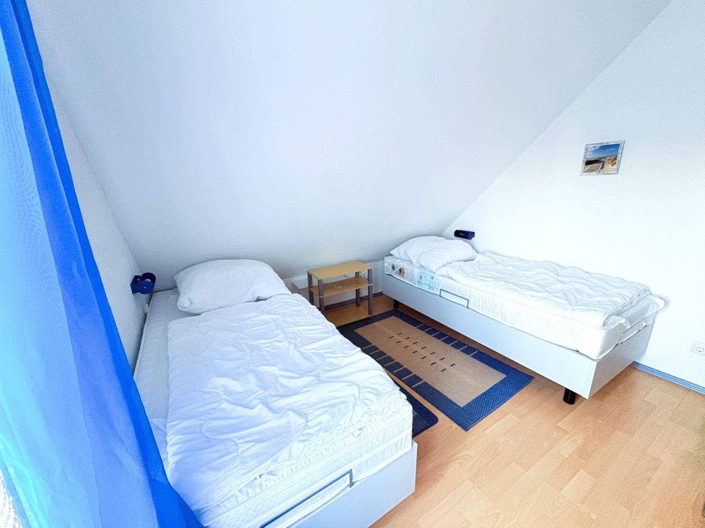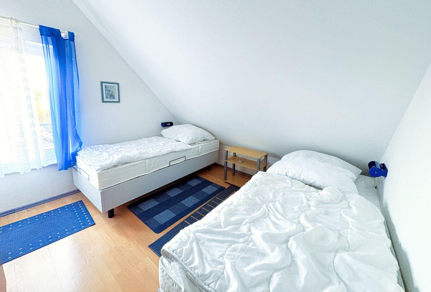 In der Maisonette befinden sich zwei weitere Schlafzimmer, jeweils mit zwei Betten, die viel Platz für Familie und Freunde bieten. Hier können Sie sich zurückziehen und die Ruhe genießen.