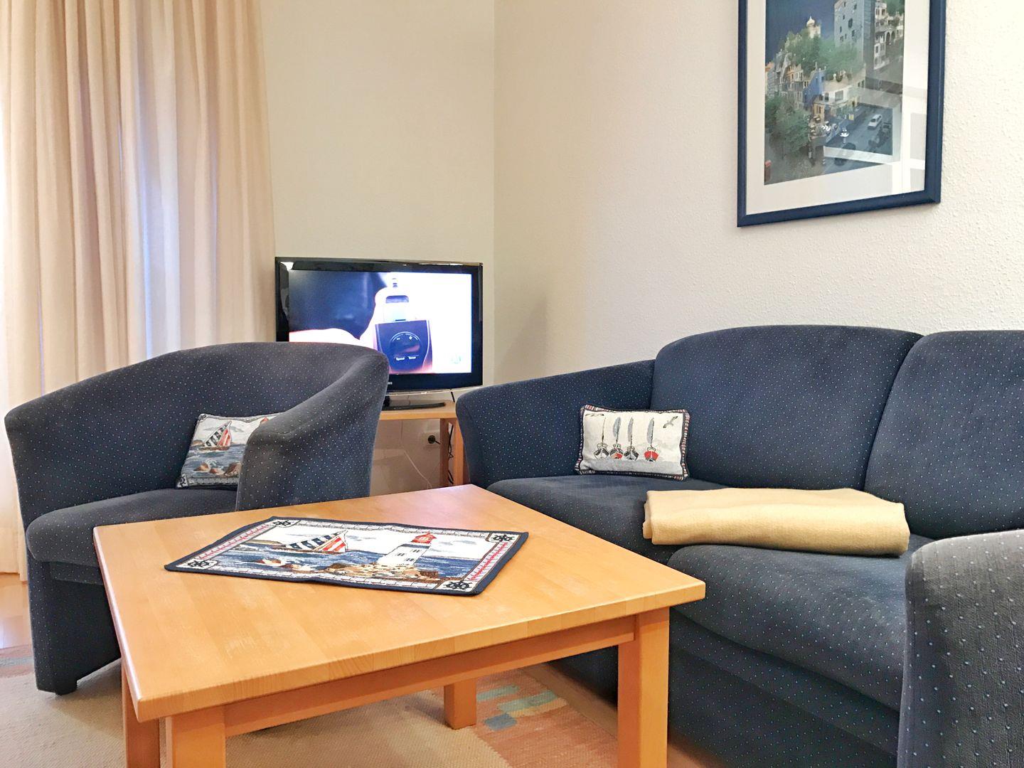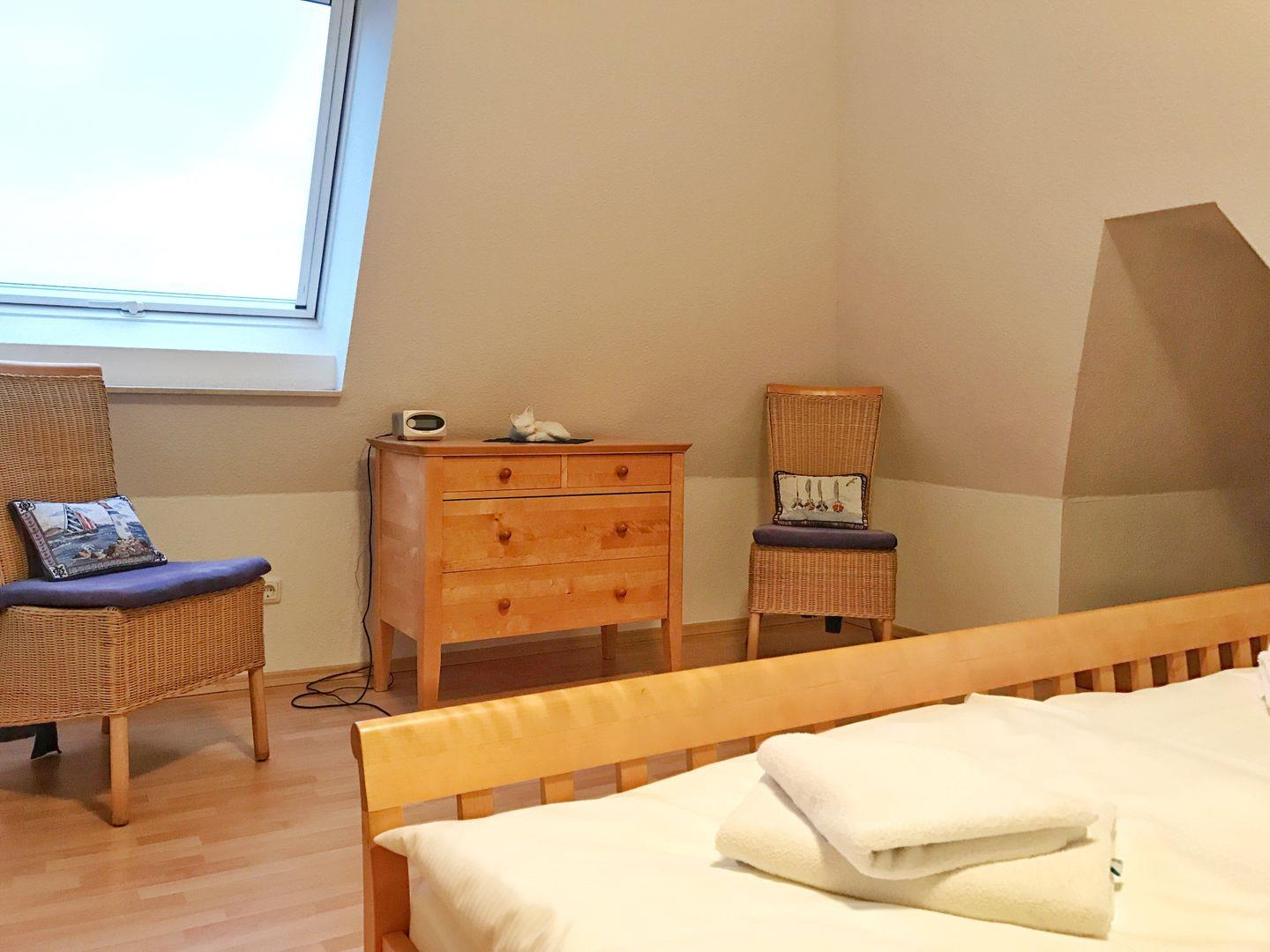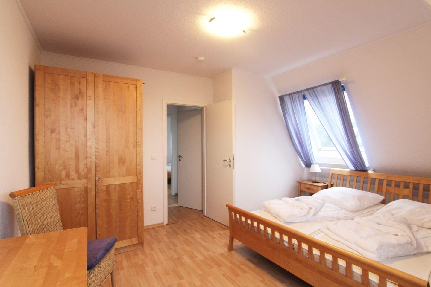 Die Maisonette-Wohnung "Ankerplatz" befindet sich im 2. Obergeschoss des vorderen Hauses der Anlage. Die gemütlich eingerichtete Ferienwohnung mit 68qm Wohnfläche bietet Platz für maximal 6 Personen. Sie verfügt über einen großen, überdachten Süd-Balkon, der einen herrlichen Blick auf den großen Jasmunder Bodden bietet und über Beleuchtung und ausreichend Sitzplätze verfügt. In der unteren Ebene der Wohnung finden Sie das gemütliche Wohnzimmer mit Zugang zum Balkon, die komplett ausgestattete Küche mit kleinem Abstellraum sowie das Gäste WC. Große, bodentiefe Fenster und Glastüren sorgen für eine helle Atmosphäre des Wohnbereiches. Über eine Treppe gelangen Sie in die Schlafebene des charmanten Ferienappartements. Hier finden Sie das Elternschlafzimmer mit Doppelbett, das Kinderzimmer mit 2 Einzelbetten und das Badezimmer mit Dusche und WC. Es steht ein schnelles und unbegrenztes Internet und Smart TV mit Netflix/Prime zur Verfügung, ein Blue-Ray- und ein DVD-Player sowie eine Musikanlage mit CD. Weitere Annehmlichkeiten wie Bücher, CD´s, DVD´s, Kinderbücher und Kinderspiele finden Sie ebenfalls in der Wohnung. Die Küche bietet einen Kühlschrank mit Gefriermöglichkeit, Filterkaffee-Maschine, Toaster, Wasserkocher und Mikrowelle. Im Bad gibt es einen Fön und einen Handtuchheizkörper. Im Hauswirtschaftsraum finden Sie einen Staubsauger und Reinigungsmittel. Zur Wohnung gehört ein kostenfreier KfZ-Abstellplatz in der Tiefgarage.