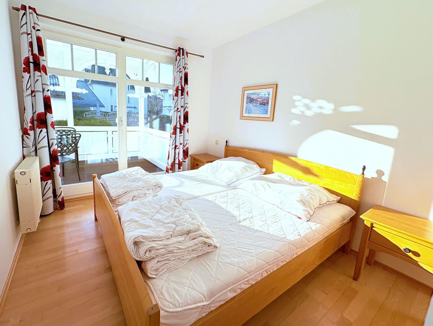 Diese 2-Zimmer-Ferienwohnung im Erdgeschoss mit Balkon befindet sich in der Strandresidenz Juliusruh – Haus II, nur 150 m vom feinsandigen, 12 km langen Badestrand Schaabe entfernt.
