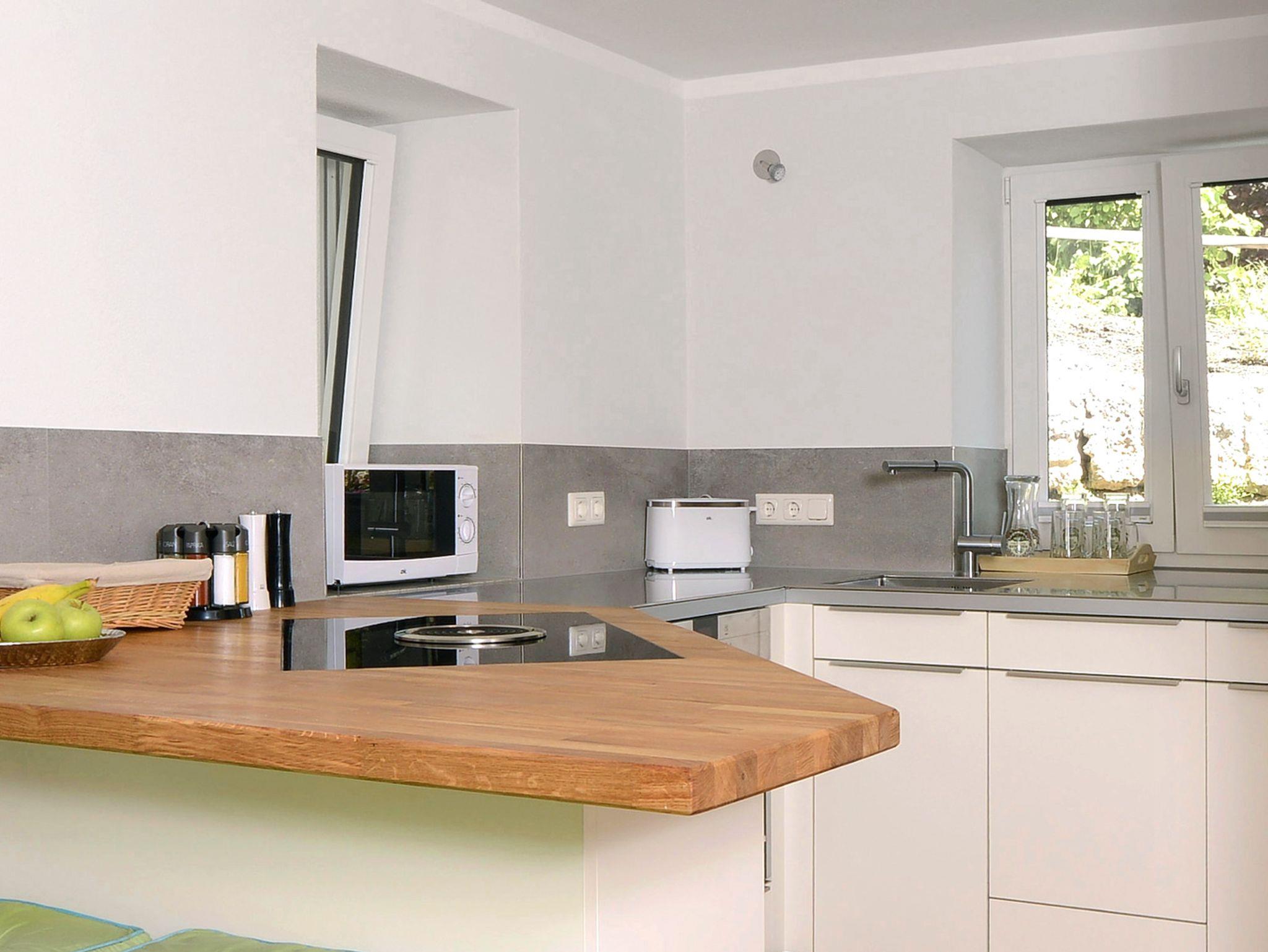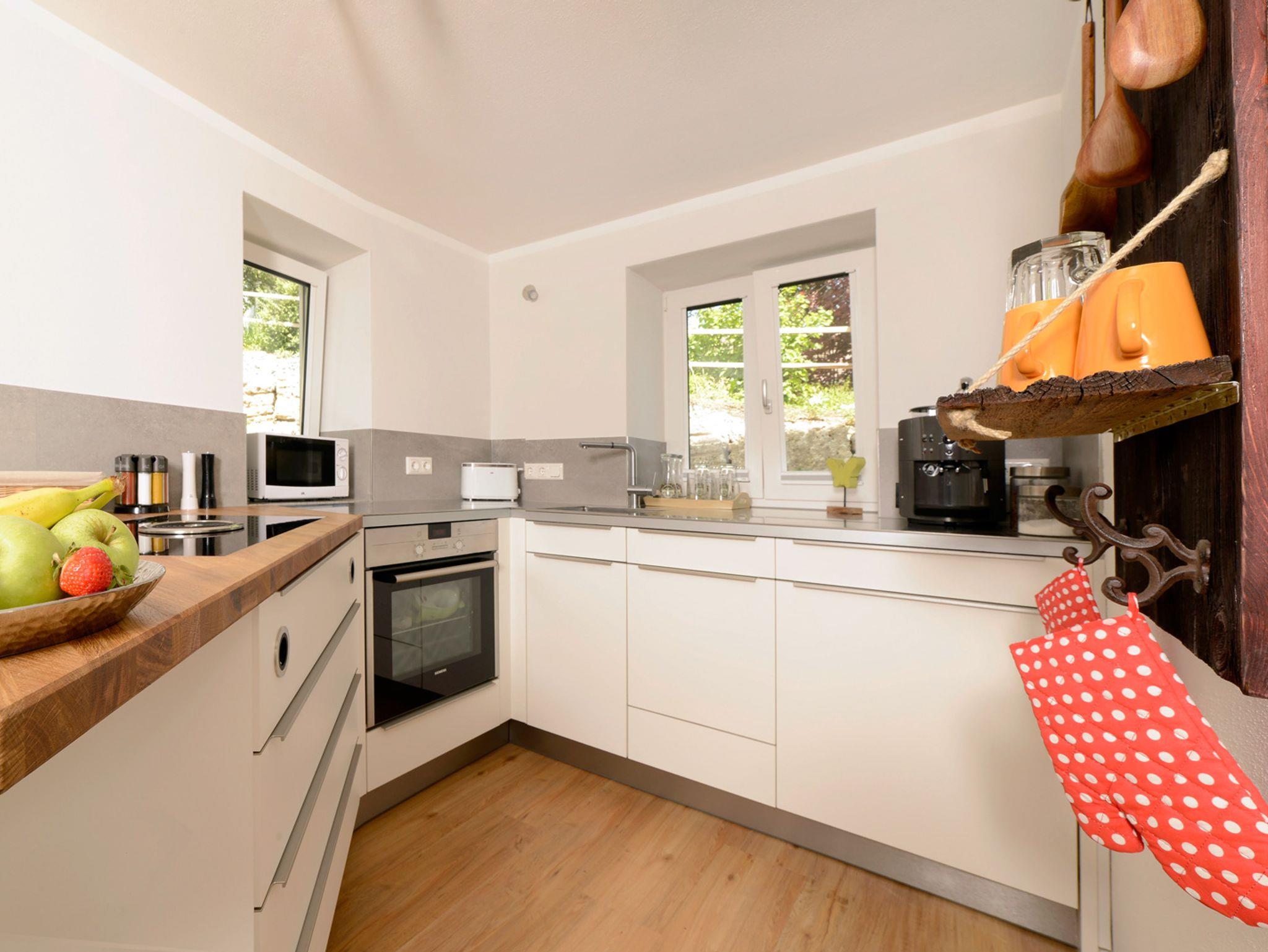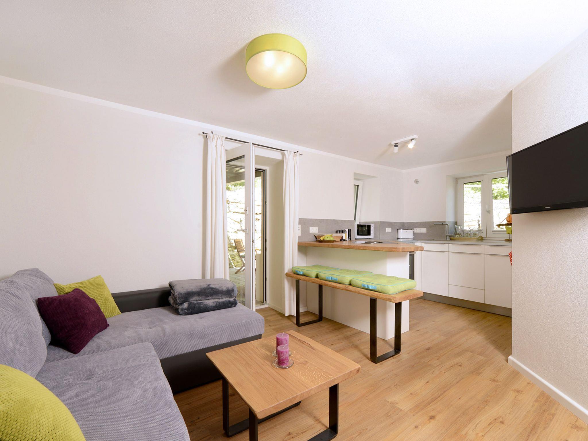 Die Ferienwohnung Leben hat 30 qm und liegt im Erdgeschoss mit einem Freisitz und Grillmöglichkeit. Sie ist aufgeteilt in eine Wohn-Essküche, ausgestattet mit einer hochwertigen Werkhausküche mit BORA Induktionskochfeld, Edelstahl Arbeitsflächen, Backofen und Spülmaschine (Sültabs und Spülmittel incl.). Zusätzlich steht Ihnen ein Kaffeevollautomat, Toaster und Wasserkochen zur Verfügung. Auch Grundgewürze wie Salz, Pfeffer, Zucker u.a. stehen für Sie bereit. Das extra Schlafzimmer ist mit einem Doppelbett ausgestattet und im Bad mit WC, Waschtisch, Dusche, Handtuchtrockner und Radio finden Sie alle wichtigen Hygieneartikel, wie Handseife, Duschgel und Shampoo vor. Kaffebohnen stellen wir Ihnen gerne gegen Entgelt zur Verfügung.
