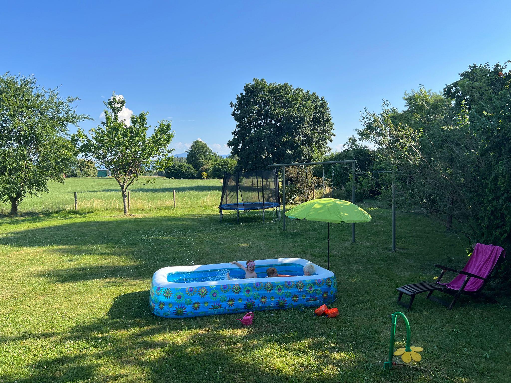 Der ungehinderte Blick auf die Berge ist Ihnen hier sicher. Im großen Garten mit Bäumen einer Liegewiese und Spielgeräte für Kinder sowie einer möbiliertenTerrasse, finden Sie Erholung pur.