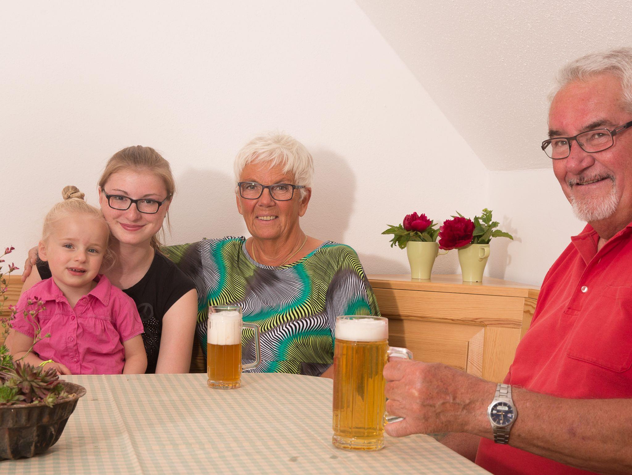 In unserem Bauernhofcafe können Sie sich gemütlich niederlassen, eine Tasse Kaffee trinken selbstgemachten Kuchen oder eine deftige Brotzeit mit selbstgebackenen Bauernbrot essen.