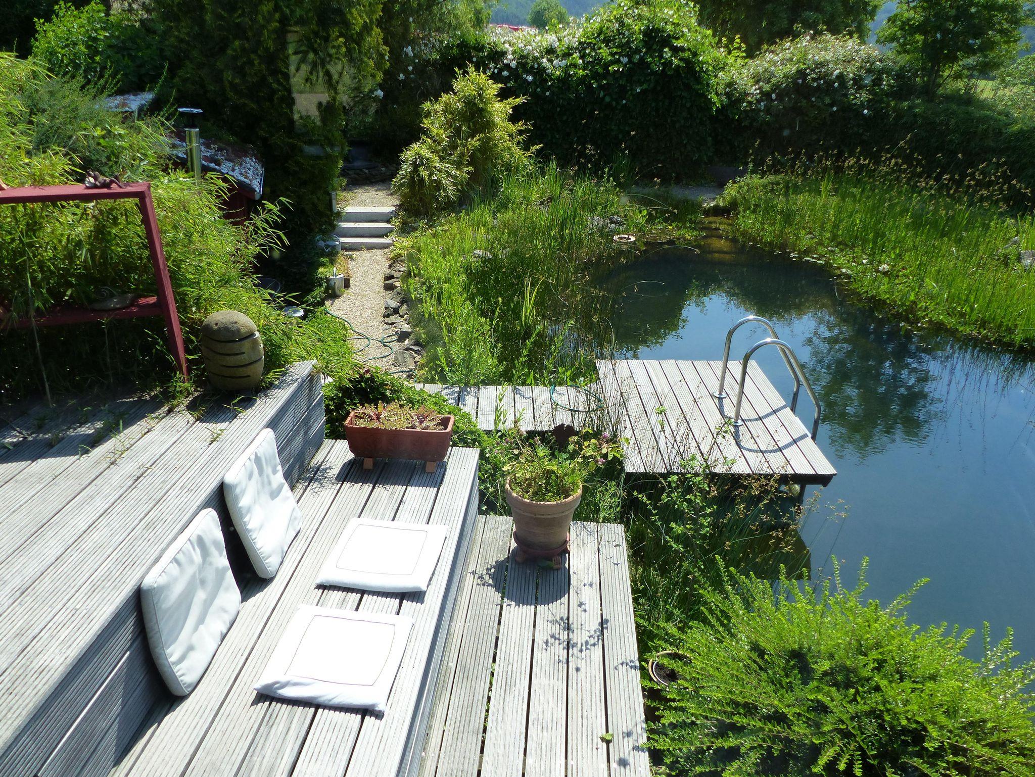 Highlight sind der Schwimmteich und die Außensauna, die Nutzung ist für unsere Gäste kostenfrei! Der Schwimmteich lockt nicht nur im Sommer sondern auch in der kühlen Jahreszeit, wenn Sie die Feuersauna im Garten nutzen. Auf einem Rundgang durch den verwunschenen Naturgarten, mit überwiegenden heimischen Sträuchern und Blumen kann immer wieder etwas Neues entdeckt werden.