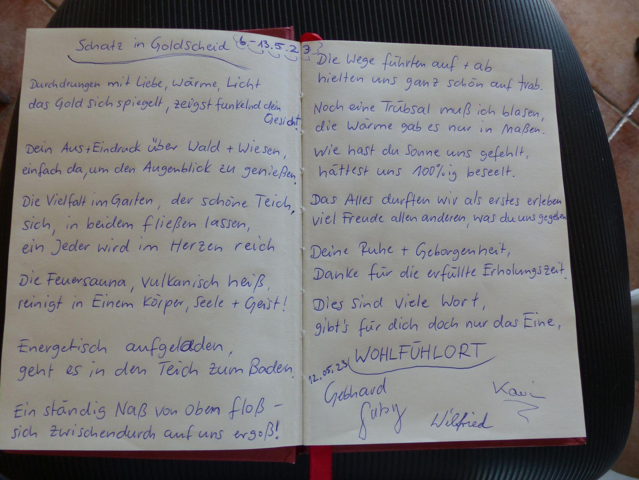 Wir weisen unsere Gäste darauf hin, dass unser Schwimmteich über 2 Meter tief ist; die Benutzung geschieht auf eigene Gefahr. Es ist wunderschön, wenn man nach dem Verlassen der heißen Sauna ins Kühle Nass eintauchen kann. Es gibt in der Abstellkammer neben der Küche Schwimmhilfsmittel aus Schaumstoff, die den Aufenthalt im tiefen Wasser sicherer machen.