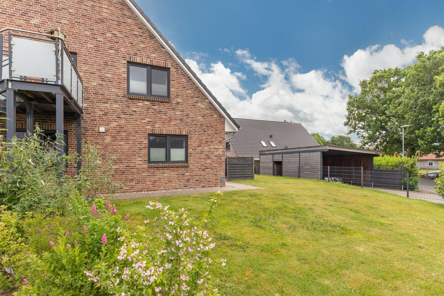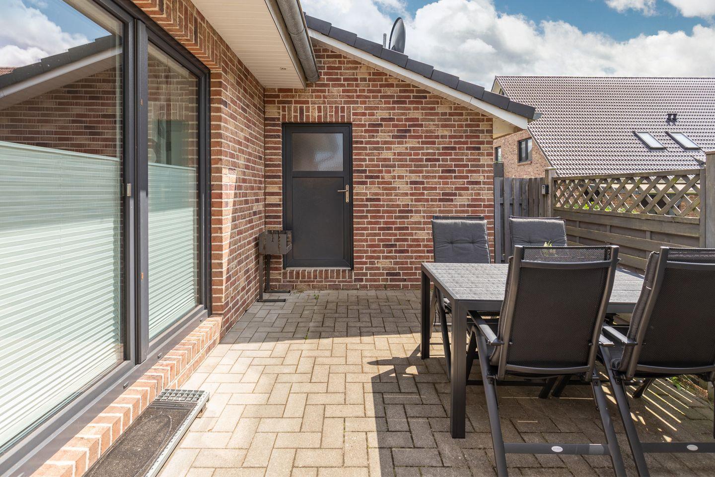 Draußen erwartet Sie ein wunderschön gestalteter Garten mit einer gemütlichen Terrasse – ausgestattet mit Gartenmöbeln und einem Grill, der zu geselligen Stunden im Freien einlädt.