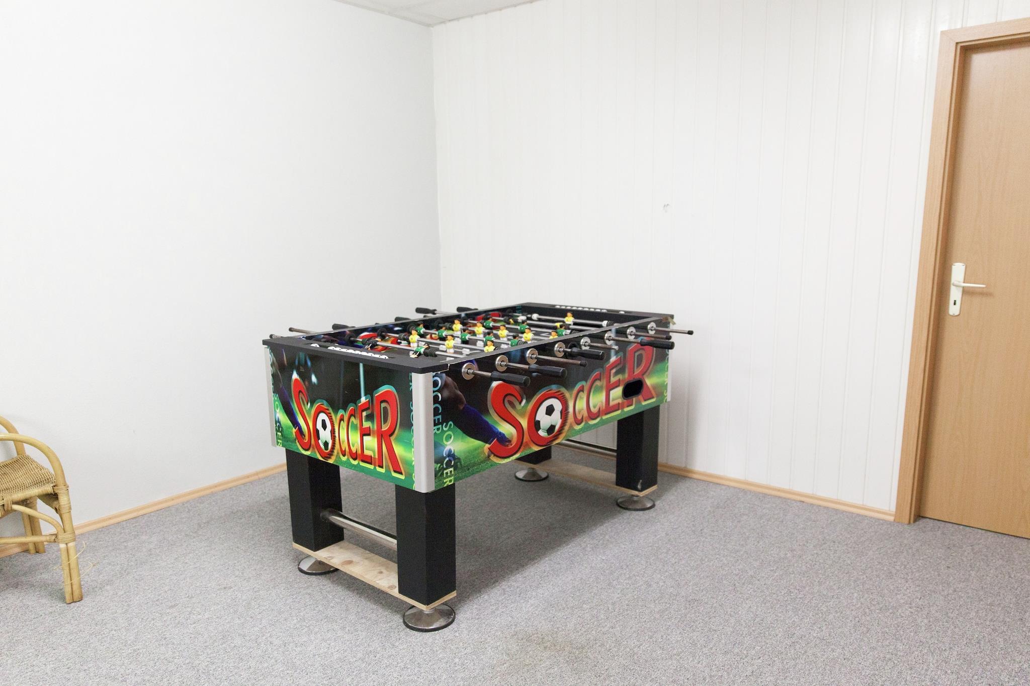 Stueetage: (entre(toilet), badeværelse(bruser, håndvask)) På 1. etage: (Stue(Fjernsyn, sofahjørne, DVD-afspiller, stereoanlæg), Køkken(spisebord, komfur(Komfur med fire kogeplader, elektrisk), 2x kaffemaskine(kaffetragt, kaffepude), ovn, mikrobølgeovn, opvaskemaskine , fryser), soveværelse(dobbeltseng), legeværelse(bordtennisbord, bordfodbold)) På 2. etage: (soveværelse(2x enkeltseng), soveværelse(dobbeltseng, barneseng), soveværelse(dobbeltseng), badeværelse(bruser, håndvask, toilet)) tørretumbler, vaskemaskine, balkon, havemøbler