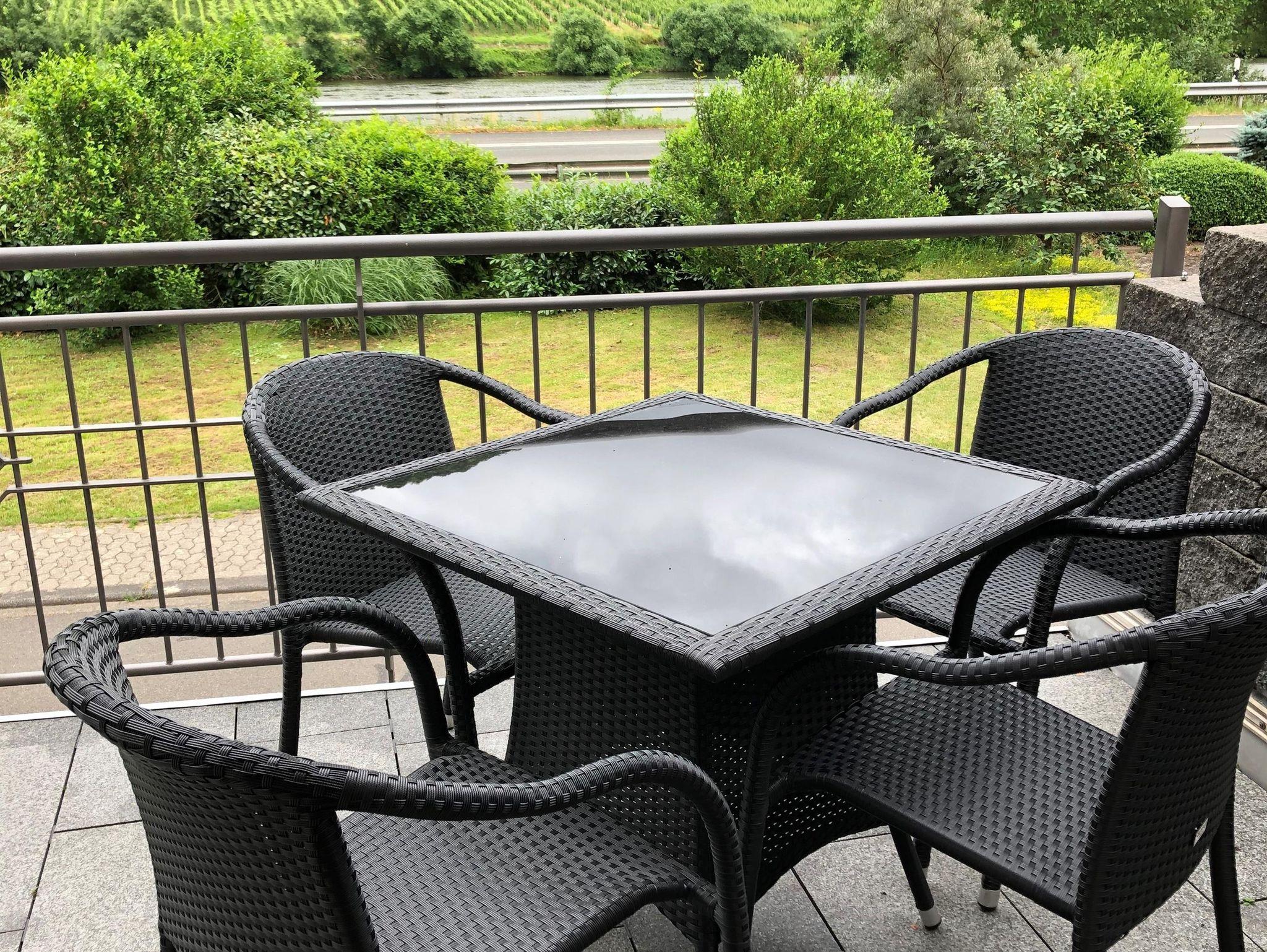 Personen zu essen und zu plaudern. Von allen Wohnungen haben Sie einen atemberaubenden Blick auf Mosel und