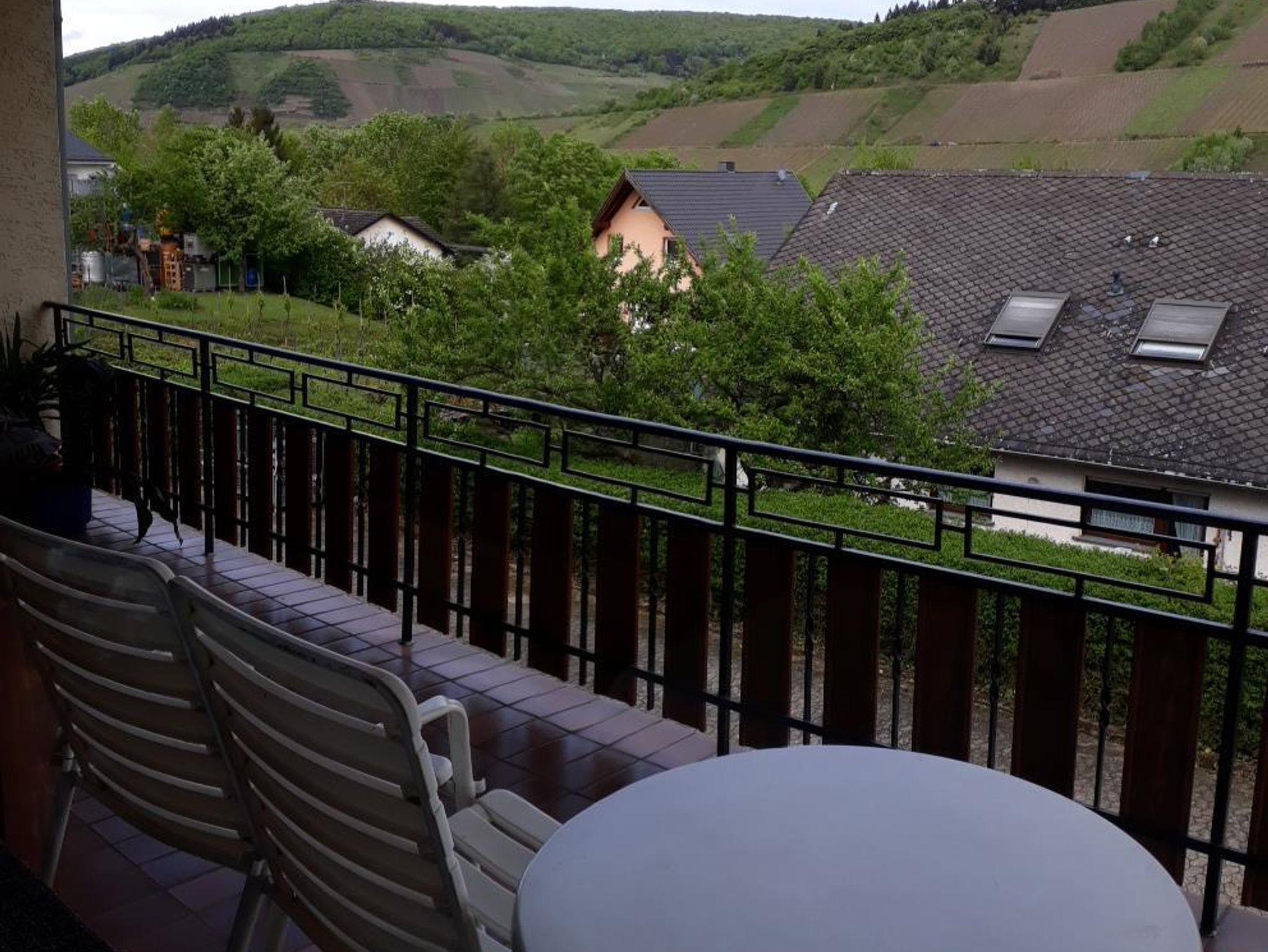 Unsere Ferienwohnung liegt ebenerdig und ist ohne Treppe zu erreichen. Die Ferienwohnung ist mit einem Balkon mit Blick auf Mosel und Weinberge, SAT-TV, Küche und mit DU/WC ausgestattet.