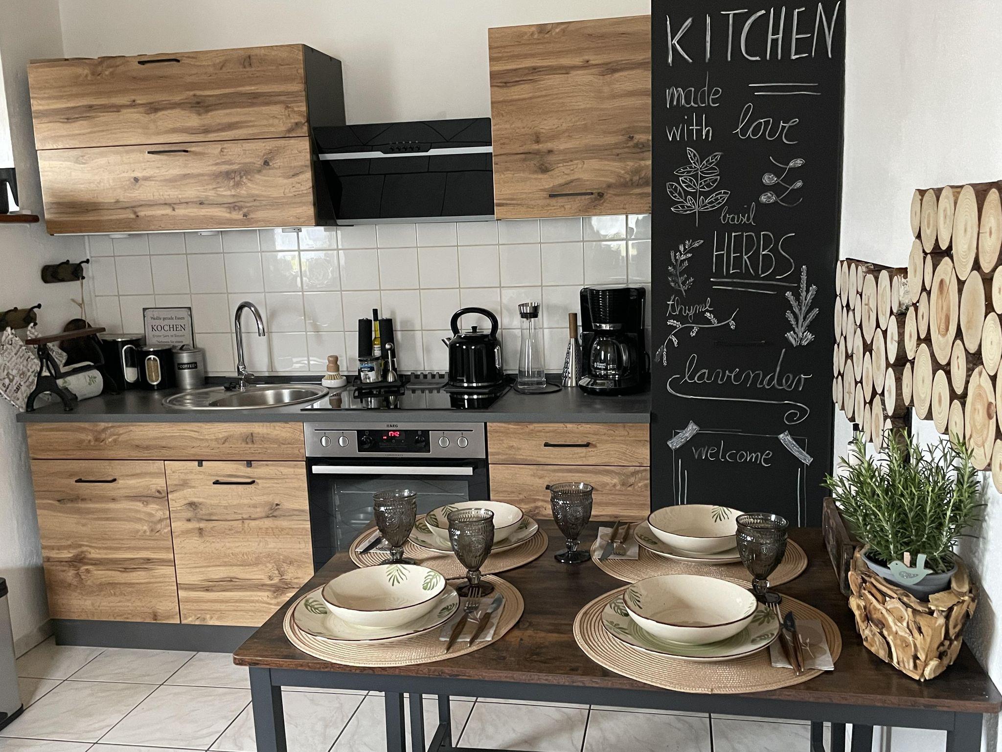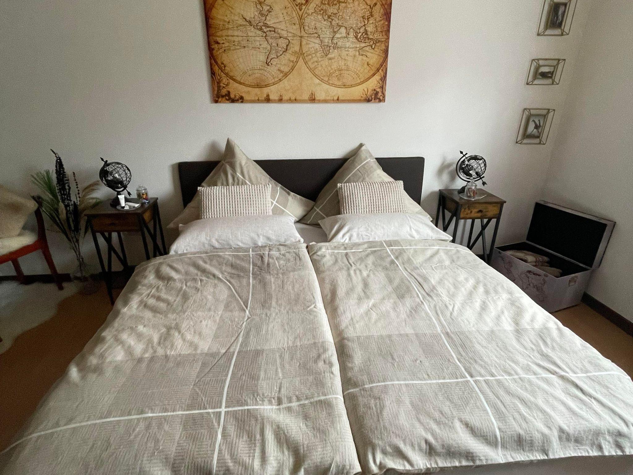 Die kleine, liebevoll eingerichtete Ferienwohnung mit Schlafzimmer, Bad, Küchenzeile mit Wohnraum ist ideal für 2 Personen. Kostenlose Parkmöglichkeit direkt am Haus. Die Küche ist ausgestattet mit allem, was eine gute Küche benötigt. Das geräumige, helle Schlafzimmer bietet Platz für max. 2 Personen. Ein kuschliges Boxspringbett lädt zum Wohlfühlen ein. Bettwäsche ist im Preis inbegriffen.