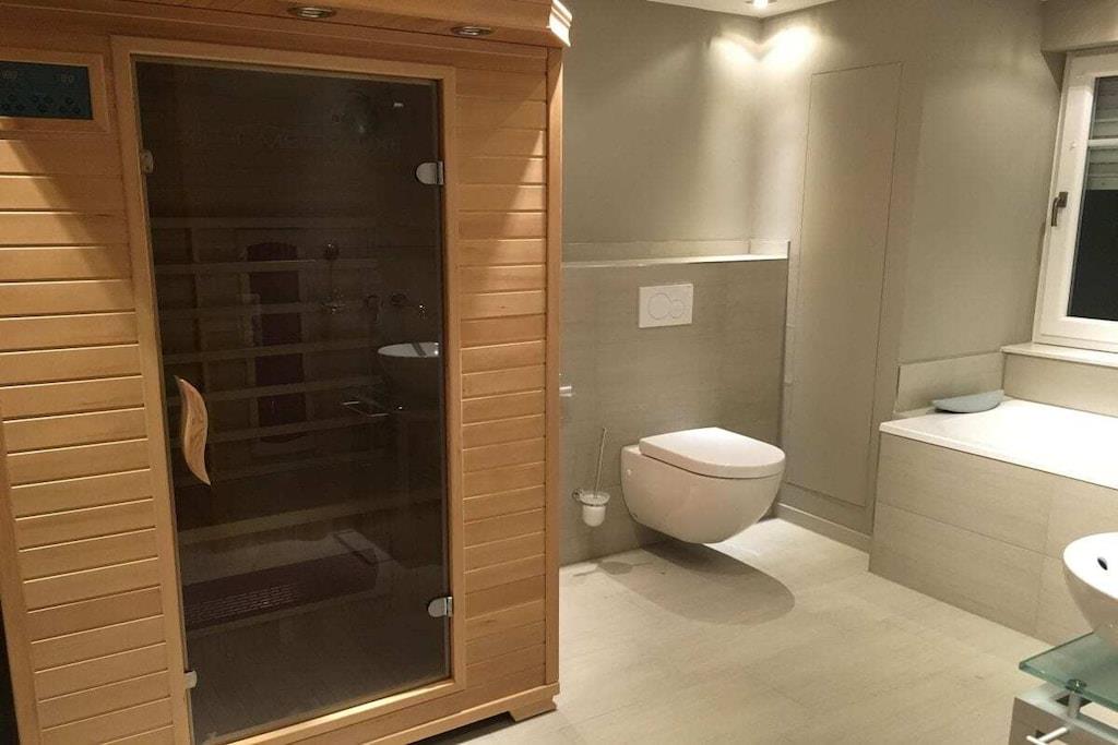 Moderne und stilvolle Ferienwohnung an der Mosel. Es erwarten Sie 130 m² purer Luxus mit 3 Schlafzimmern, 2 Bädern, 1 Küche und 1 Wohnzimmer. Wanderwege beginnen direkt am Haus. Zur Entspannung können Sie sich in Ihrer privaten Sauna verwöhnen lassen oder eine Massage in unserem Massagesessel genießen. Gerne arrangieren wir für Sie auch eine kosmetische Wellnessbehandlung in Ihrer Ferienwohnung. Lassen Sie sich verzaubern von unseren Traumpfaden und Radwanderwegen entlang der sonnigen Untermosel. Es erwartet Sie ein buntes Kulturprogramm mit Schlössern und Burgen, sowie kulinarische Köstlichkeiten und bete Moselweine der Region. Wir freuen uns auf Ihren Besuch!!