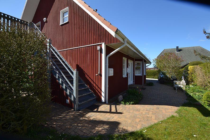 Typisches Schwedenhaus mit zwei Ferienwohnungen in der Gemeinde Brodersby-Goltoft. Die Wohnung Freya im Obergeschoss hat einen separaten Eingang und bietet Platz für 4 Personen und einen Hund.