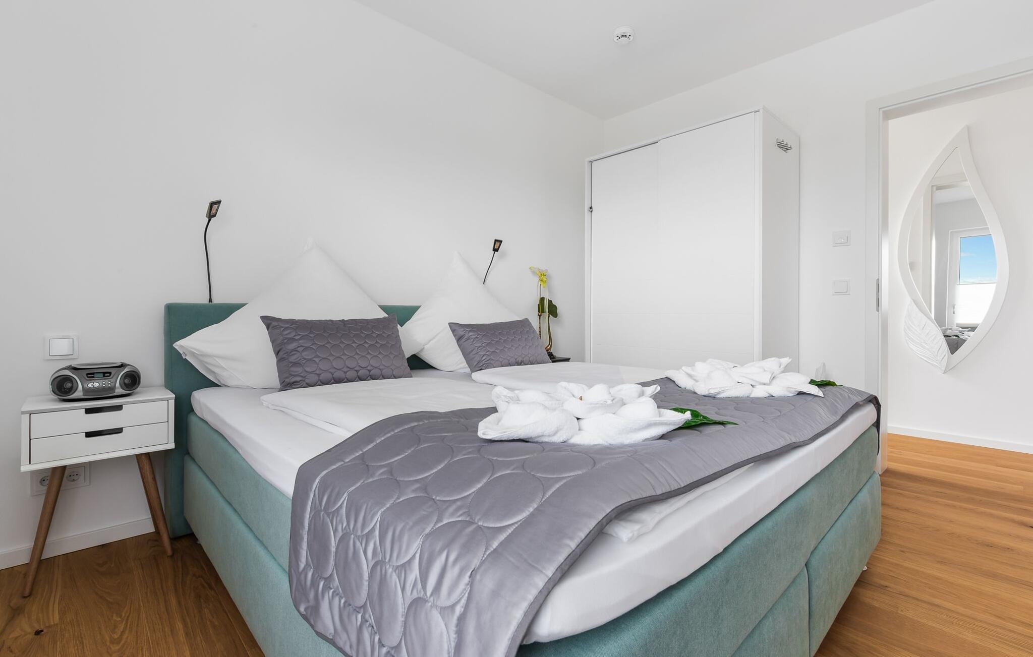 Træd ind i en moderne lejlighed af meget høj kvalitet indrettet med sans for detaljer med uhindret udsigt over Østersøen på 1. sal i et lejlighedshus på strandpromenaden. Uanset om I er en familie med børn, på ferie med venner eller holder en pause for to, byder Buhne 7” jer varmt velkommen og ønsker jer en uforglemmelig ferie lige fra starten. Nyd morgensolen, mens I spiser morgenmad sammen på den sydvendte terrasse med havudsigt og en strandstol og afslut aftenen efter en skøn dag på den vestvendte terrasse med et glas vin og hyggelige samtaler, mens solen går ned. Når det er køligt eller blæsende, kan I drømme jer ved pejsen i stuen, putte jer i de afslappende stole, se jeres yndlings-tv-program, oplev legene sammen, nyde massagestolen eller slappe af i den infrarøde sauna (varmekabinen). I kan også drømme vidunderligt i de to soveværelser, som hver er udstyret med en komfortabel boxmadras (180 cm x 200 cm), topper, ekstra hygiejnisk sengetøj, læselamper, rummeligt klædeskab, plisségardiner, fladt. skærm og glidende insektskærm. Fra begge soveværelser er der udgang til den møblerede vestvendte terrasse. Højhastigheds-WiFi er gratis, og tv'erne leverer streamingtjenester såsom Netflix, Magenta Home LMagentaTV Smart osv. På badeværelset finder I en stor bruseniche med klapsæde, toilet, håndvask med underskab, stort spejlskab, kosmetikspejl, hårtørrer, håndklæderadiator, vaskemaskine og en udtrækbar væghængt tørretumbler. Der er også et insektnet på badeværelsesvinduet. Det omfattende køkkenudstyr imponerer med alt, hvad man kan ønske sig i et moderne køkken. Til de yngre gæster er der en høj stol, specialservice/bestik og en trinskammel på badeværelset. Hele lejligheden er udstyret med ægte træparket, gulvvarme og persienner. Vinduerne i stuen kan også mørklægges med et elektrisk rullegardin med fjernbetjening. Der er plads i den underjordiske parkeringsplads til jeres bil. Derfra kan I tage elevatoren direkte til jeres opholdsområde. Cykler kan opbevares sikkert i den aflåselige cykelkælder ved siden af den underjordiske parkeringsplads. Hvis køkkenet forbliver koldt, byder den italienske restaurant på havnen på en omfattende, lækker menu med mad og is. Populære cocktails, kaffe, kage og en udstilling med lokale kunstnere venter på jer i kunstbaren. EDEKA, der også ligger ved havnen, er velassorteret til jeres indkøb. Her er også en bistro med et udvalg af retter til den lille appetit og et velassorteret bageri. Bemærk venligst: OstseeResort Olpenitz er meget populært, og der bygges fortsat i parken. Ikke desto mindre kan I se frem til en 5-stjernet standard og et førsteklasses ophold. Byggeaktiviteterne kommer ikke til at forstyrre jer på ferien, og derfor gives der ikke yderligere afslag i prisen.