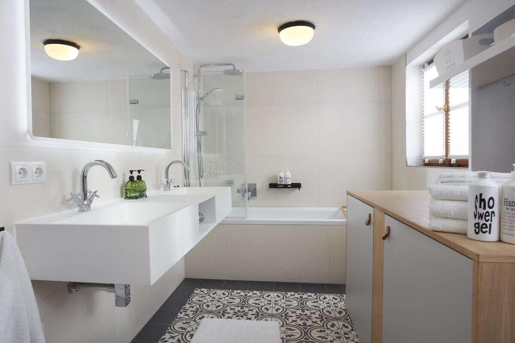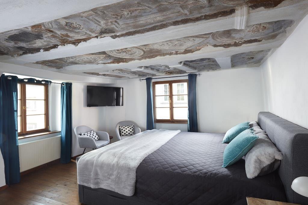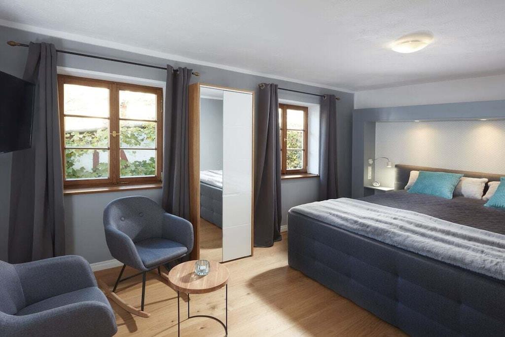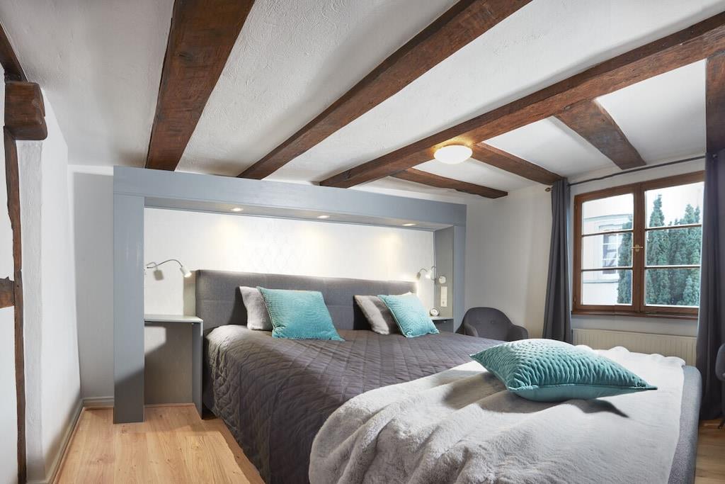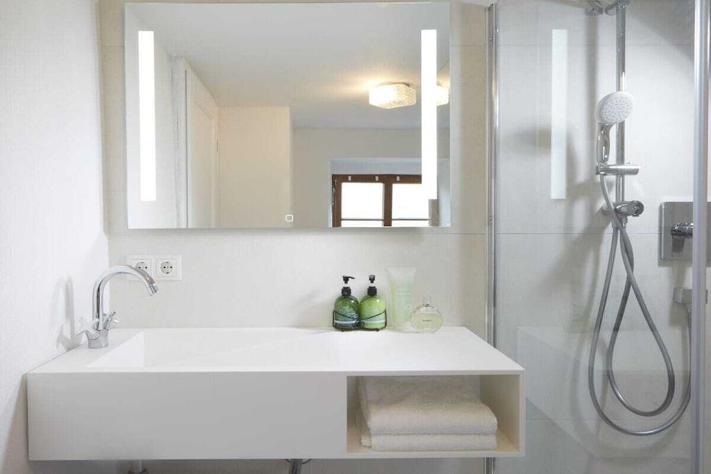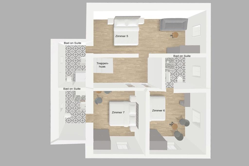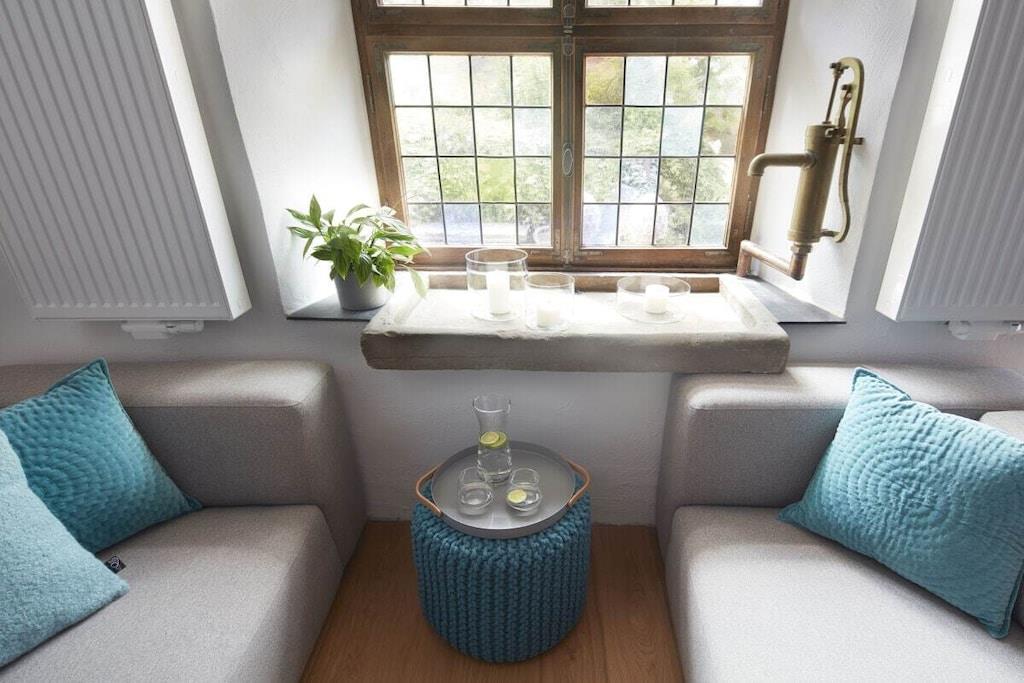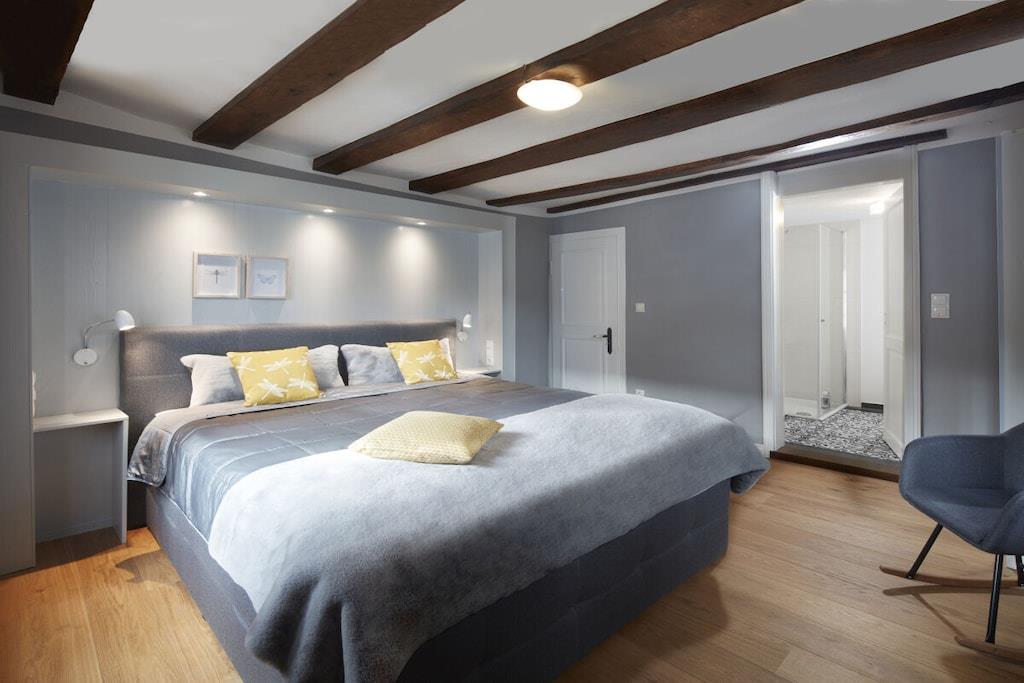 OLIVE TREE FERIEHUS Priserne for Traum-Ferienwohnungen inkluderer altid 8 personer. Da vi ikke kan variere minimumsbelægningen på denne portal i de forskellige årstider, vil vi gerne gøre dig opmærksom på, at du om vinteren og i pauser i løbet af ugen også kan booke til reducerede priser for 6 personer eller flere. Yderligere information kan findes på vores hjemmeside: www.the-treehouses.de Eksklusive tjenester: Uanset om det er vinsmagning, massage, privat kok eller catering, kan du blot booke yderligere specialtjenester. Du har mulighed for at føle dig hjemme i en fredet bygning, oprindeligt bygget i 1595 i Bullay som den aristokratiske residens "Pauly". Olive Tree blev restaureret og fuldstændig renoveret indtil september 2020. Den seneste renovering fandt sted i 2022. Feriehuset er kendetegnet ved en kombination af moderne møbler og husets historiske stil. Ud over andre historiske træk pryder et kölnsk spejlrelief-stukloft et af soveværelserne. Med 7 soveværelser, 6 badeværelser og et stort fællesrum med spisestue, stue, åbent køkken, en smuk bar og et 50 kvadratmeter stort saunaområde er dette feriehus ideelt til familier og venner eller firmaarrangementer. Indvendigt er meget af den oprindelige struktur bevaret, såsom et loft med spejlrelief i Köln-stil. Vi har kombineret dette historiske hus med moderne møbler. Huset har en smukt anlagt, solbeskinnet have med en stor terrasse og et havebord til op til 15 siddepladser. Der er også flere ekstra siddeområder samt et loungeområde. En legeplads ligger mindre end 100 meter væk, direkte ved Mosel-floden.