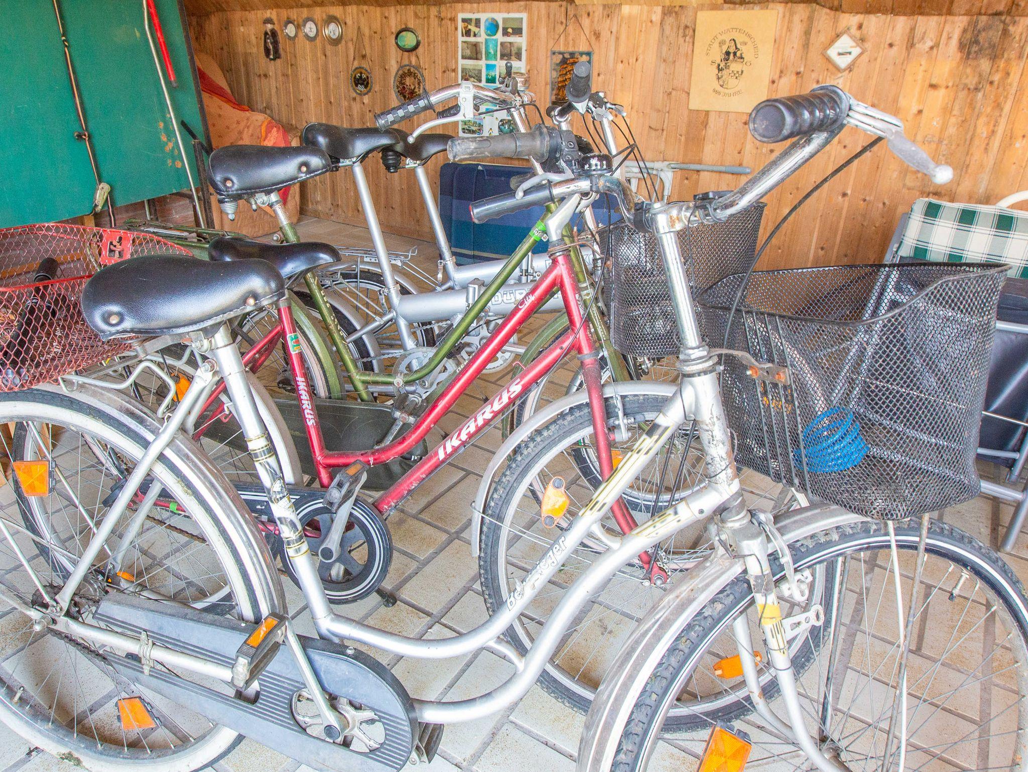 Es gibt einen Fahrradschuppen zum unterstellen Ihrer Fahrräder, und 5 alte Fahrräder, die frei benutzt werden können.