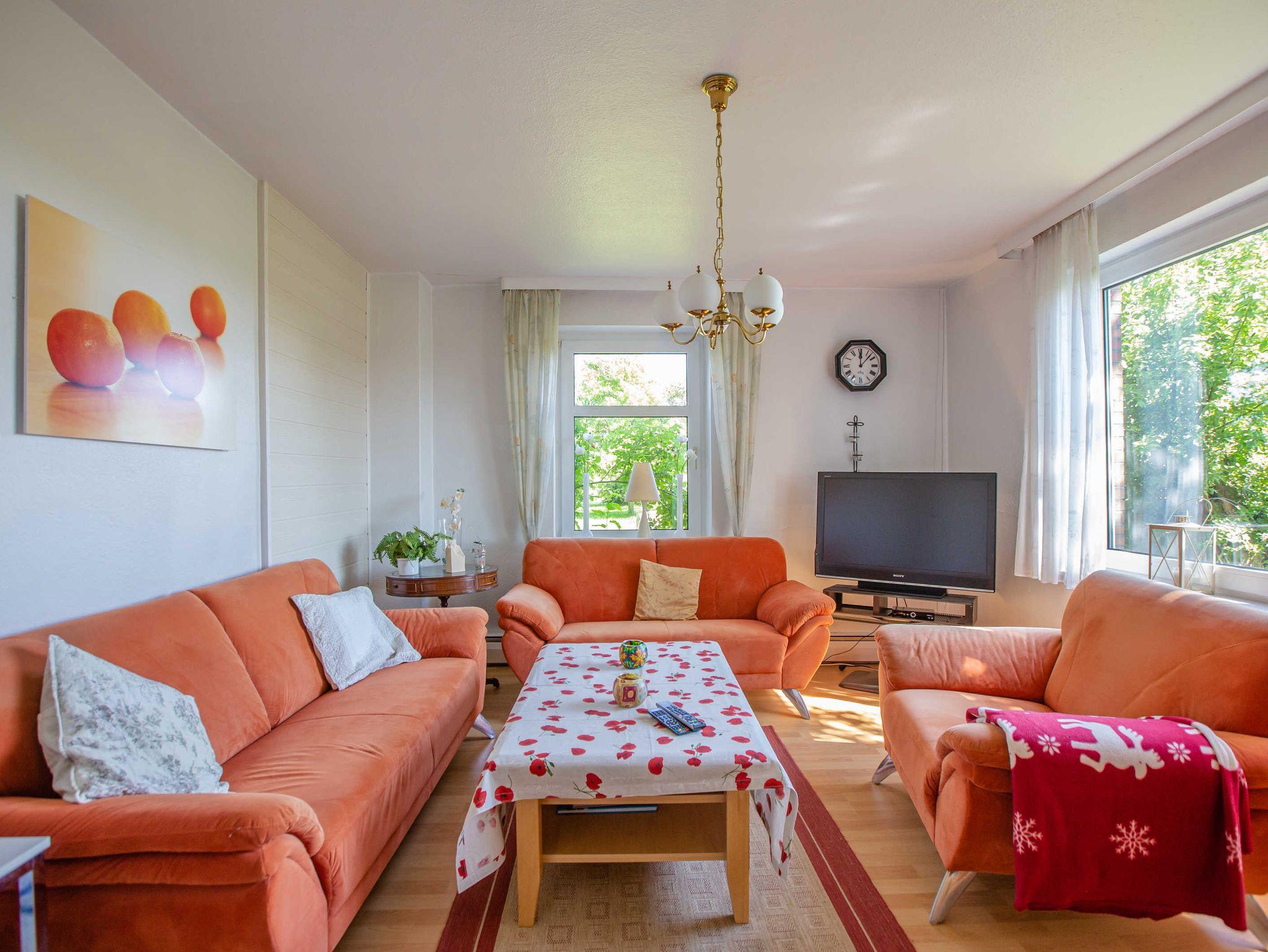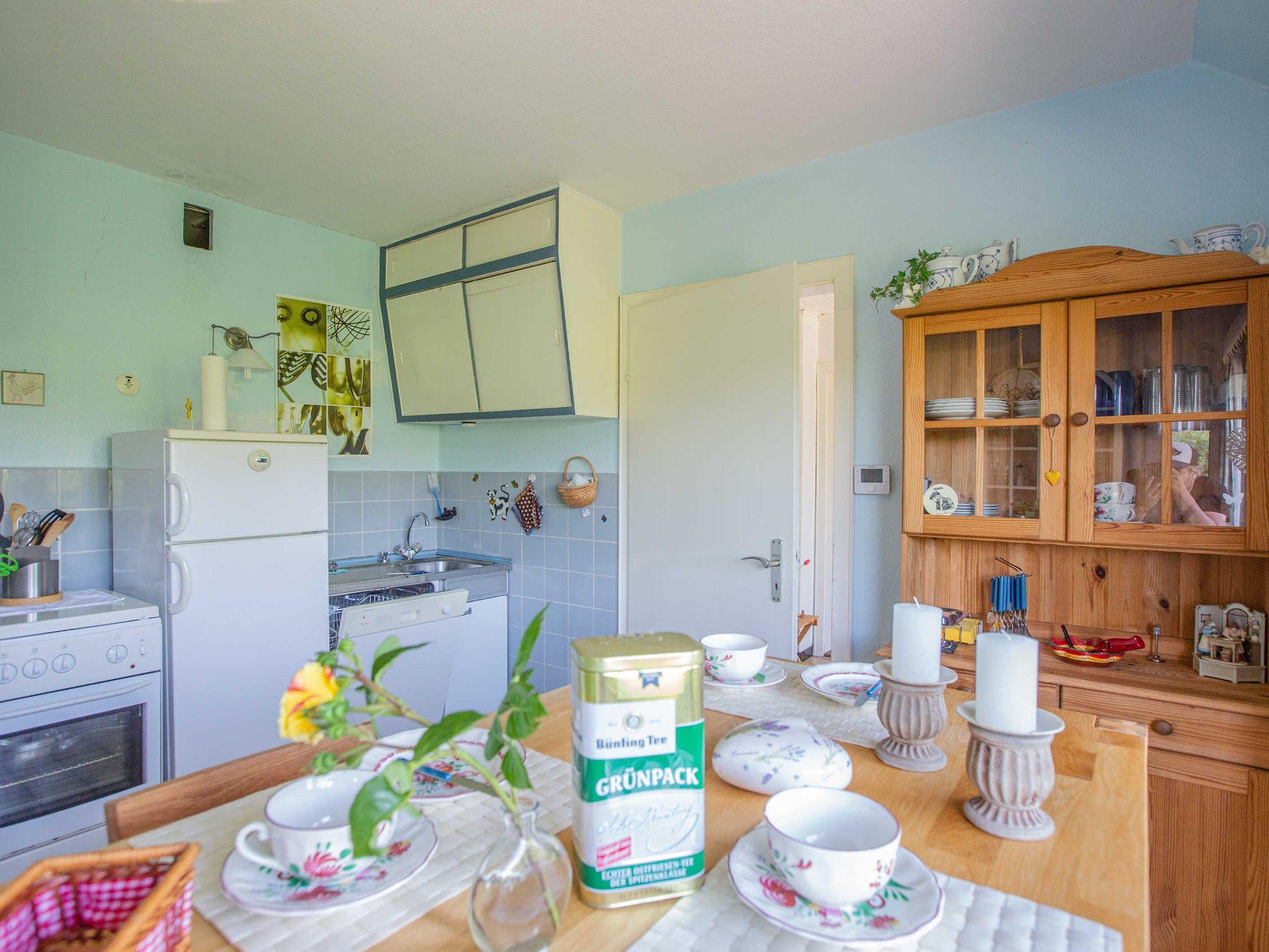 *Wohnung 1 (die Größere): Erdgeschoss, Wohnzimmer mit TV, Küche mit Herd und Backofen, Kühlschrank mit Gefrierfach, Wasserkocher und Kaffeemaschine (Pad und Filter), Spülmaschine ,