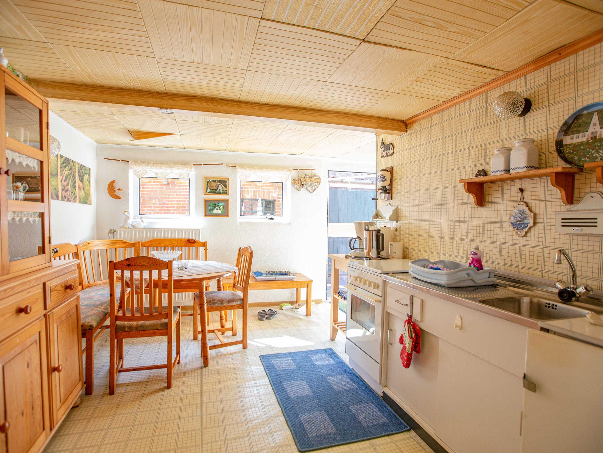 Das Haus hat 2 voneinander getrennte Wohnungen und ist typisch ostfriesisch, aber sehr einfach eingerichtet. Wer Wert auf moderne Möbel und Komfort legt, ist hier ausdrücklich an der falschen Adresse. Zum Haus gehört ein Grundstück mit 1500qm Fläche mit 2 großen Gärten mit Obstbäumen (Apfel, Birne, Pflaume, Kirsche), Johannisbeer- und Stachelbeer Streuchern, und einem großen Fahrradschuppen (5 alte Fahrräder vorhanden!). Je nach Tageszeit kann man entweder im vorderen Garten entspannen und speisen, oder hinter dem Haus sitzen und der Sonne beim Untergehen hinter dem Deich zuschauen, und sich die frische Nordseeluft bei einem kühlen Jever um die Nase wehen lassen.