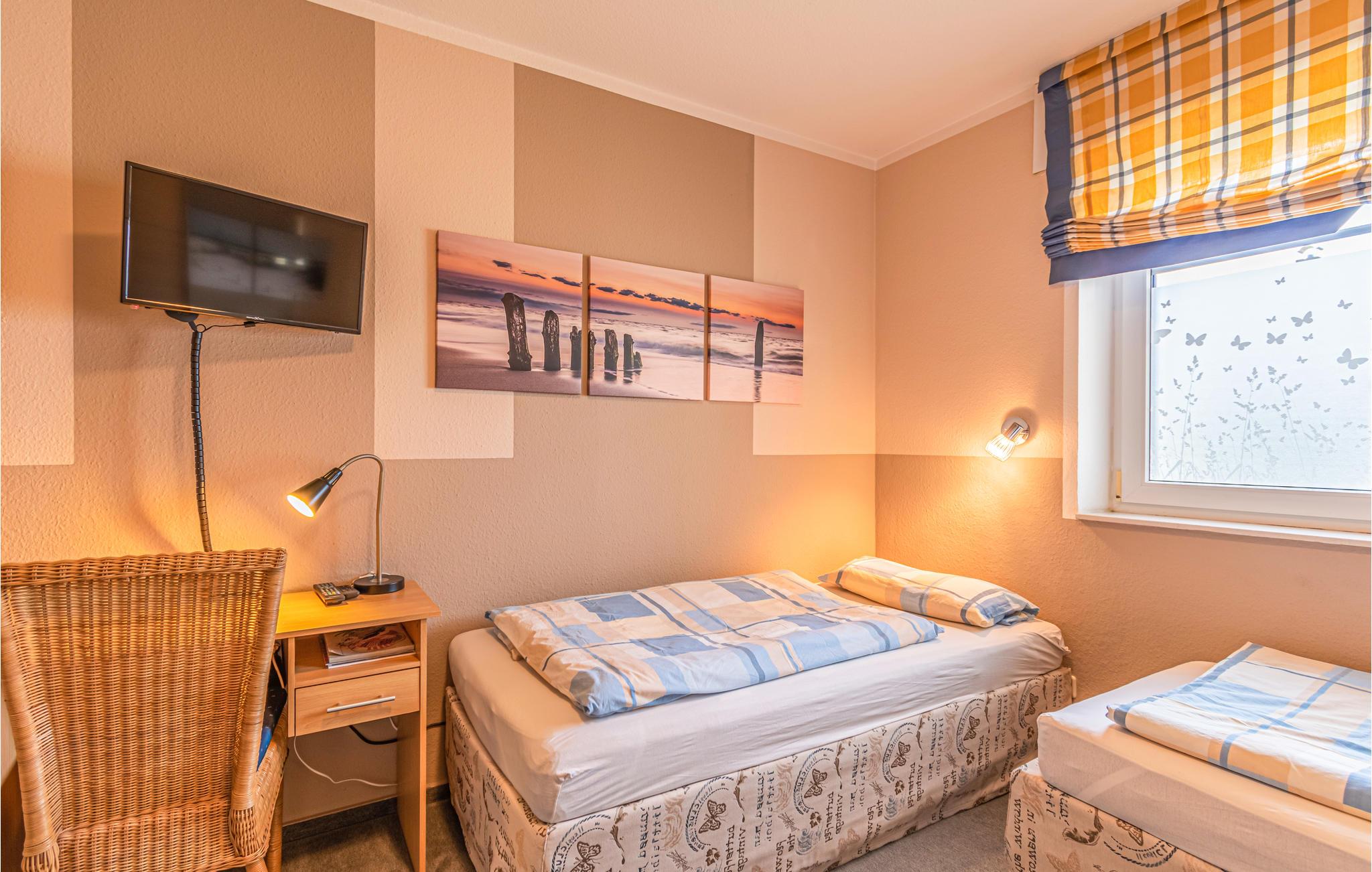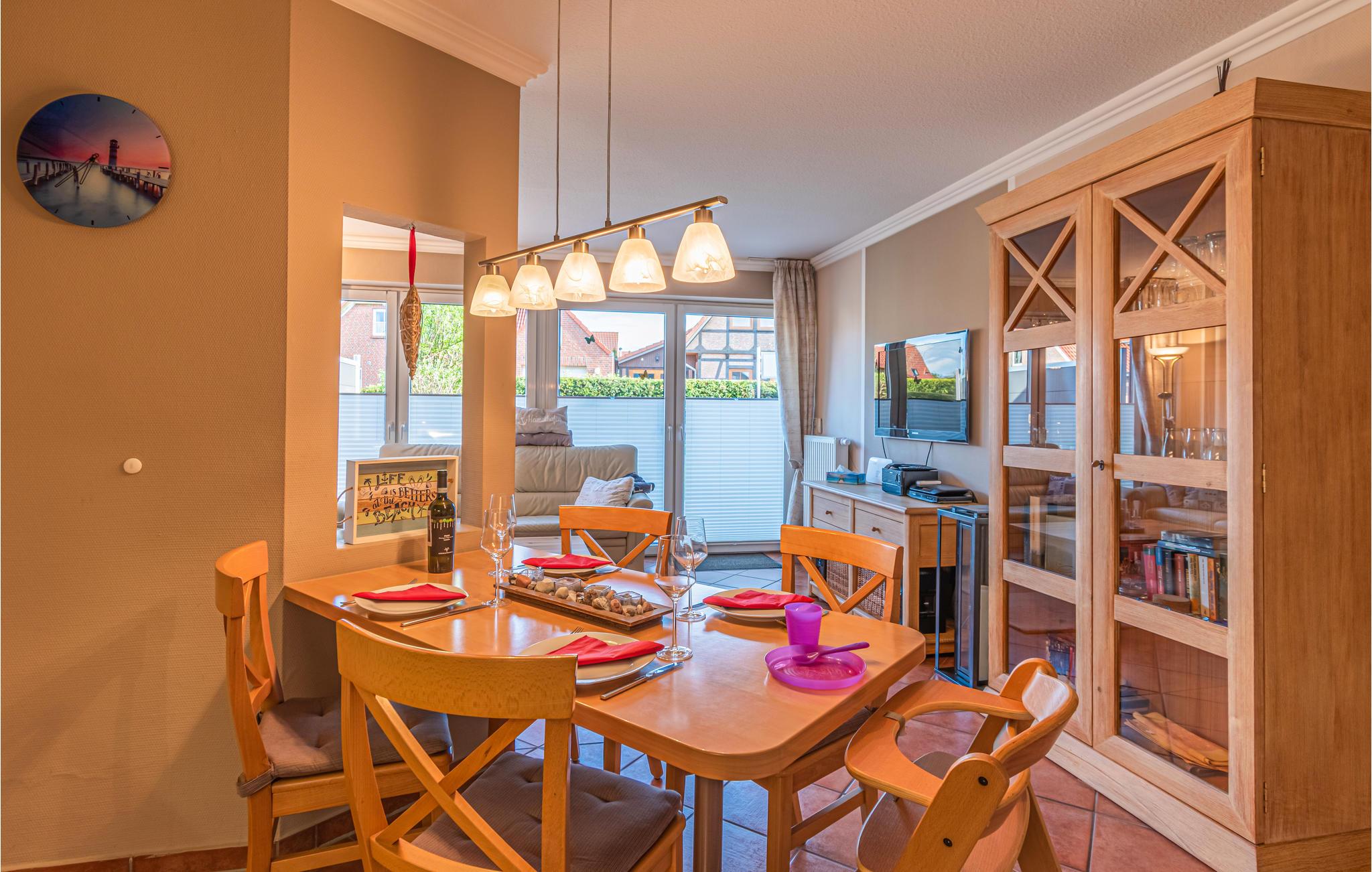 Denne komfortable ferielejlighed ligger i et roligt beboelsesområde på den sydlige del af øen Fehmarn og ca. 2 km fra den berømte sydstrand. Lejligheden er fuldt udstyret til jeres ferie og er også ideel til familier med børn. Der er persienner på alle vinduer (nogle elektriske) og myggenet på soveværelserne og badeværelserne. For et afslappende ophold med børn er der en høj stol, en barneseng eller en rejseseng i lejligheden. På regnvejrsdage leveres underholdning med Smart TV med Magenta TV og Amazon Prime. En brændeovn er også tilgængelig til hyggelige eller romantiske øjeblikke.