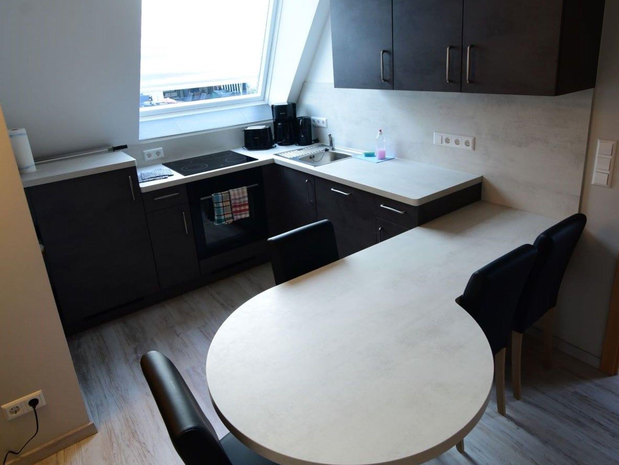 Die Einbauküche verfügt über die neuesten Geräte einschließlich Geschirrspülmaschine, Elektroherd, Backofen, Kühlschrank mit Gefrierfach, Wasserkocher, Toaster und Kaffeemaschine. Auch alle notwendigen Küchenutensilien sowie ausreichend Geschirr sind vorhanden.