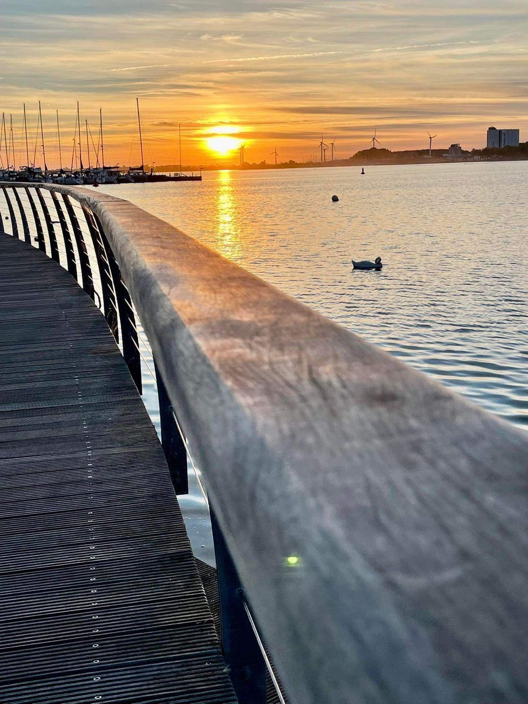 Nur ca. 180m sind es vom Marina View Apartment zum Strand. - Der fantastische Südstrand ist DLRG überwacht und liegt im Empfangsbereich des öffentlichen WLAN der Gemeinde Fehmarn. In unmittelbarer Strandnähe finden Sie Restaurants, Cafés, Spielplätze, Toiletten, Duschen und einen Wickelraum.