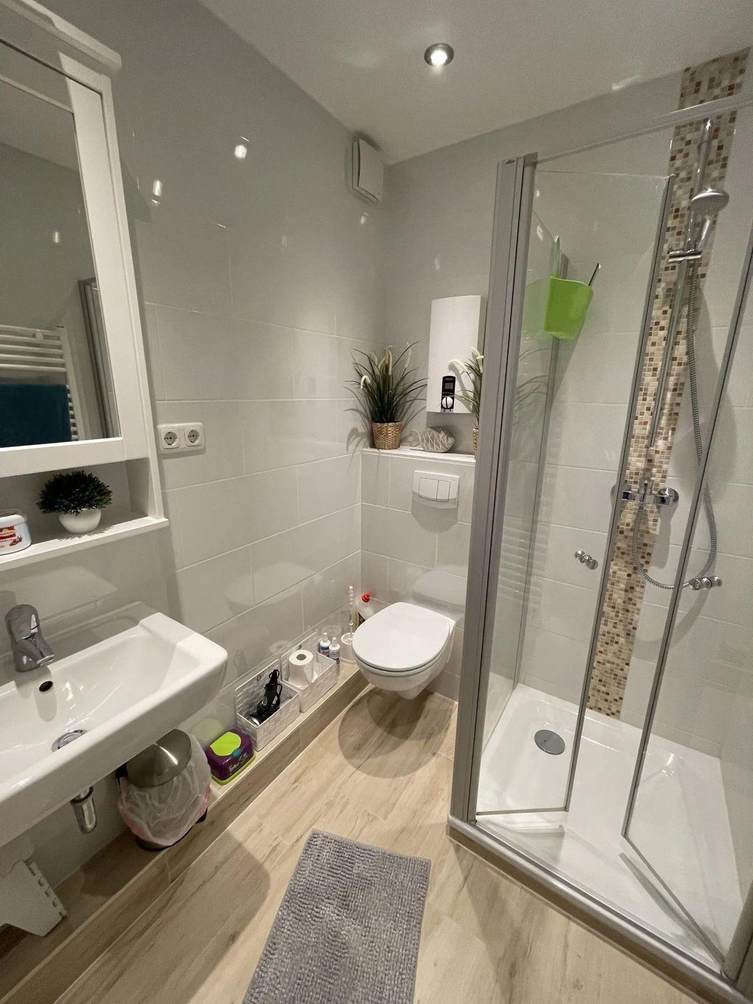 helles, modernes Duschbad, Haartrockner
