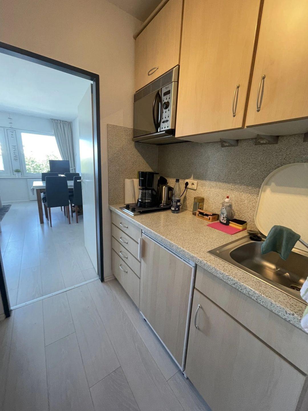Moderne Einbauküche mit moderner Ausstattung ( Cerankochfeld, Backofen/Mikrowelle, Kühlschrank mit Gefrierfach Kaffeemaschine, Wasserkocher, Toaster)