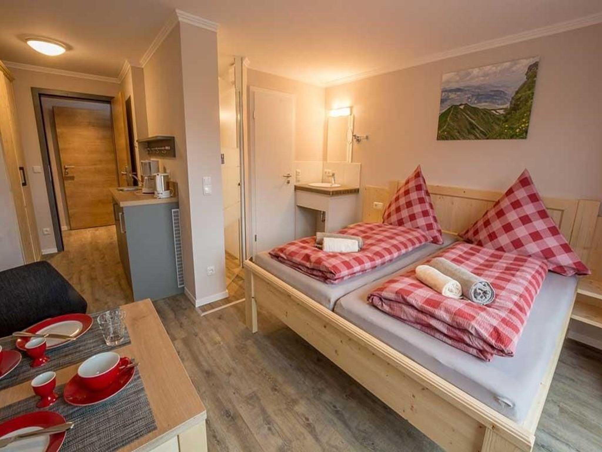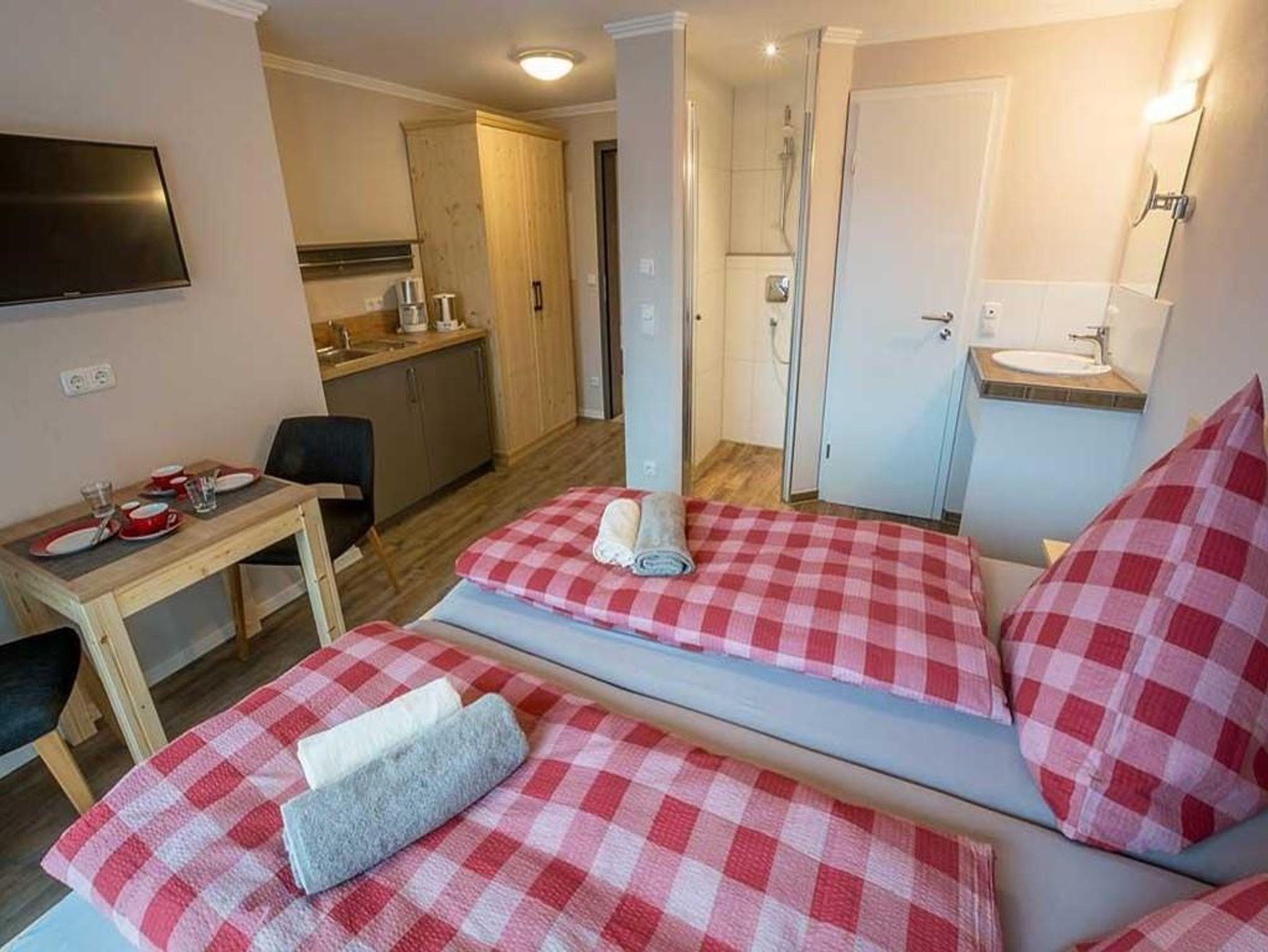 Kuschliges, komfortables Zimmer für 1-2 Personen, ruhig und sonnig mit Blick auf die Berge aus dem Bett, neuem Dusch- und Sanitärbereich, kleine Pantry für einen Kaffee zwischendurch. Warme Mahlzeiten bekommen Sie in den zahlreichen Gaststätten in der nahen Umgebung.