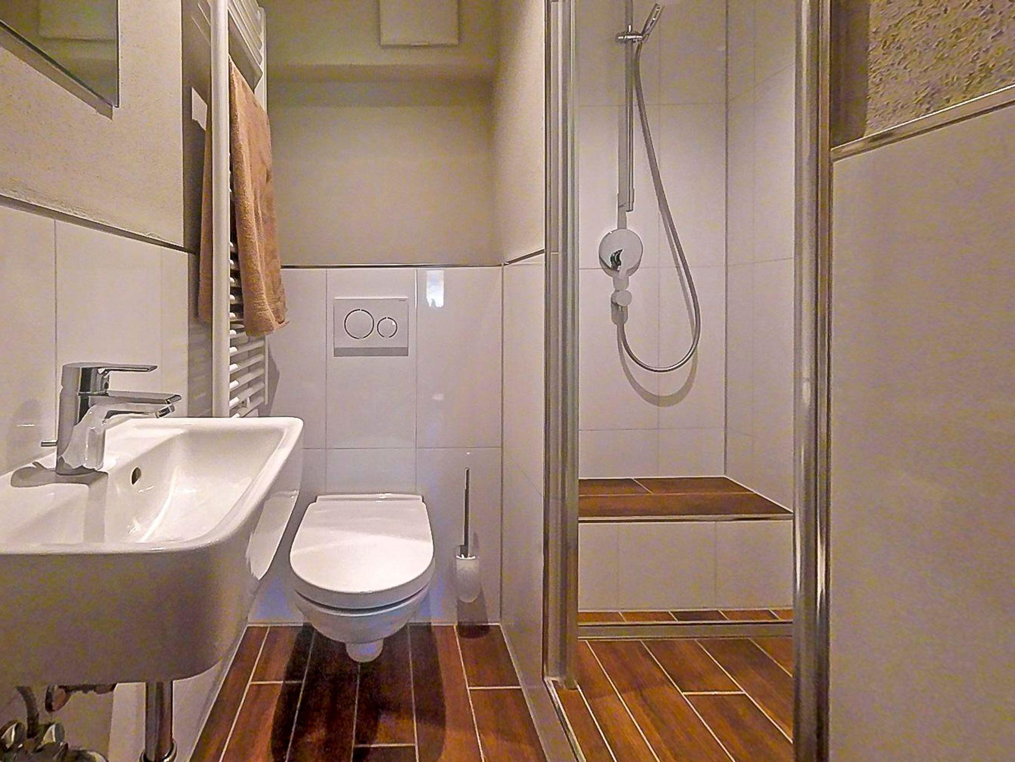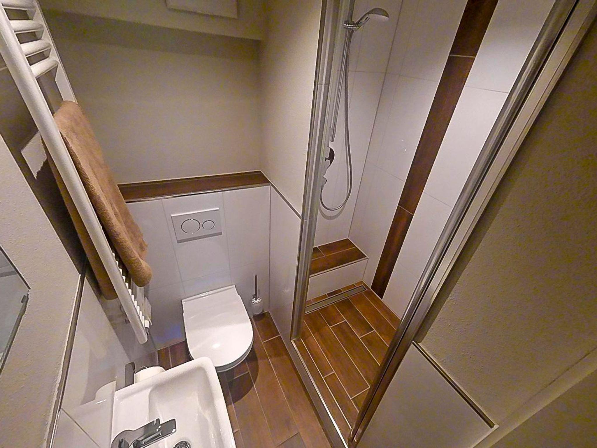 Zwei geräumige Schlafzimmer mit bequemen Betten, Duschbad mit WC. Zusätzlich ist in jedem Schlafzimmer ein Waschbecken (was den morgendlichen Stau vor der Badezimmertür deutlich entzerrt).