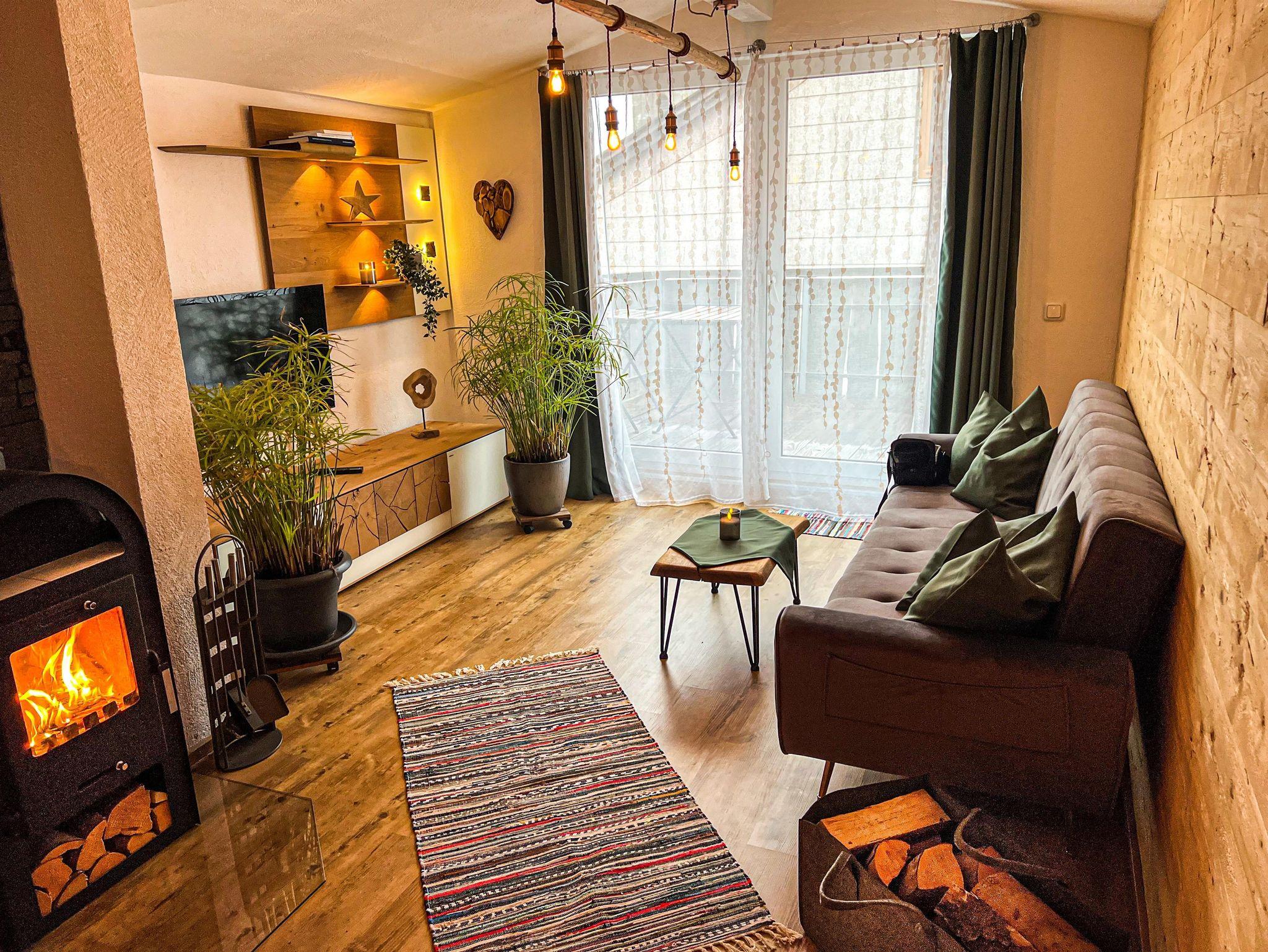 Übergehend aus dem Luftraum in den weiteren Wohnbereich mit Zugang zur Dachterasse befindet sich einladend, neben dem zweiten Kaminofen und zusätzlichem Flachbildfernseher eine ausziehbare Schlafcouch mit weiterer Kapazität für einen muckligen Schlafplatz.