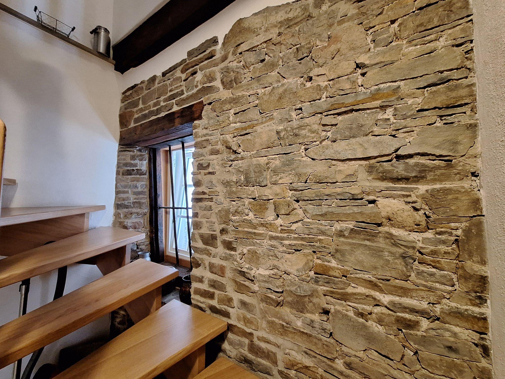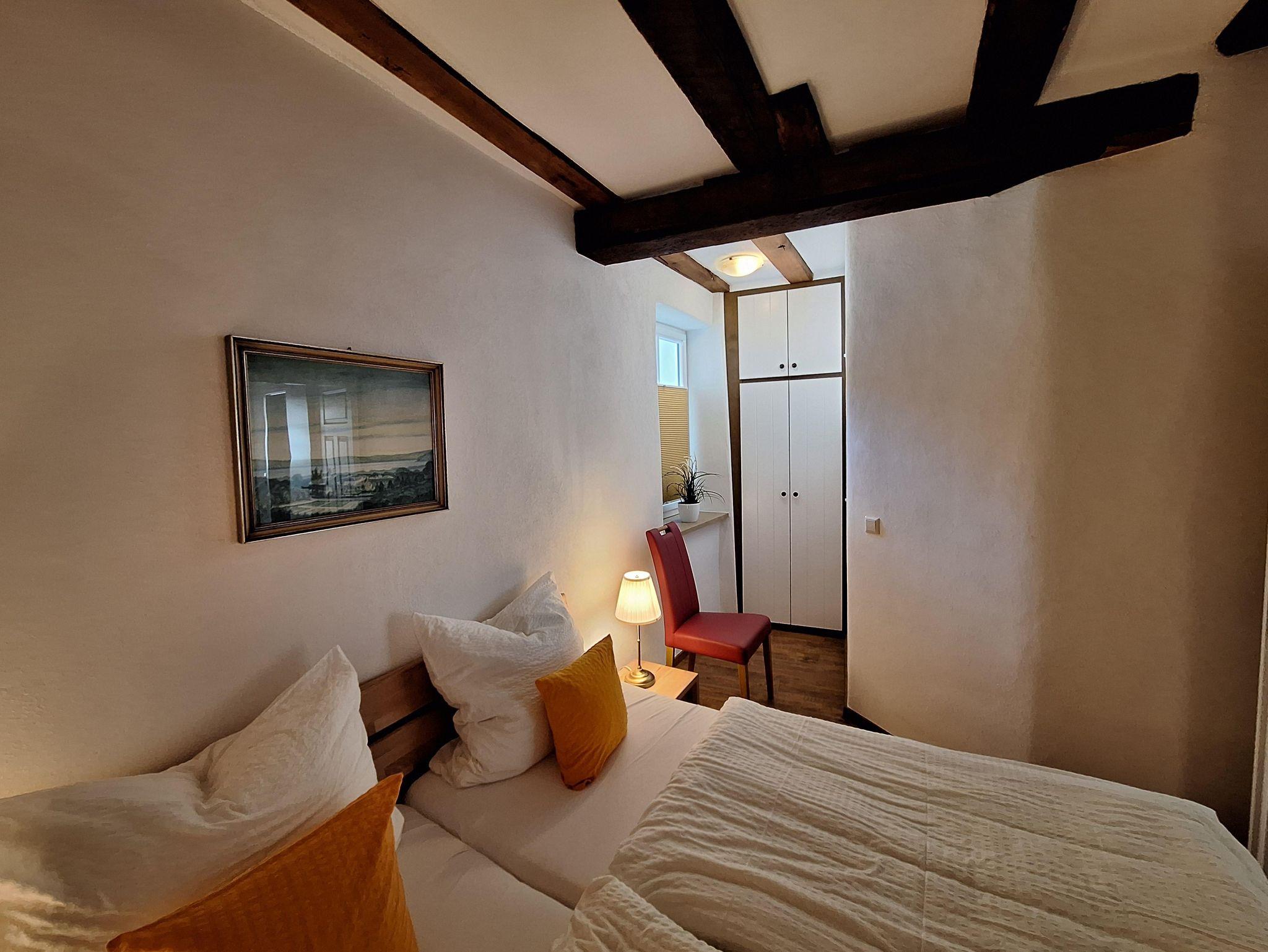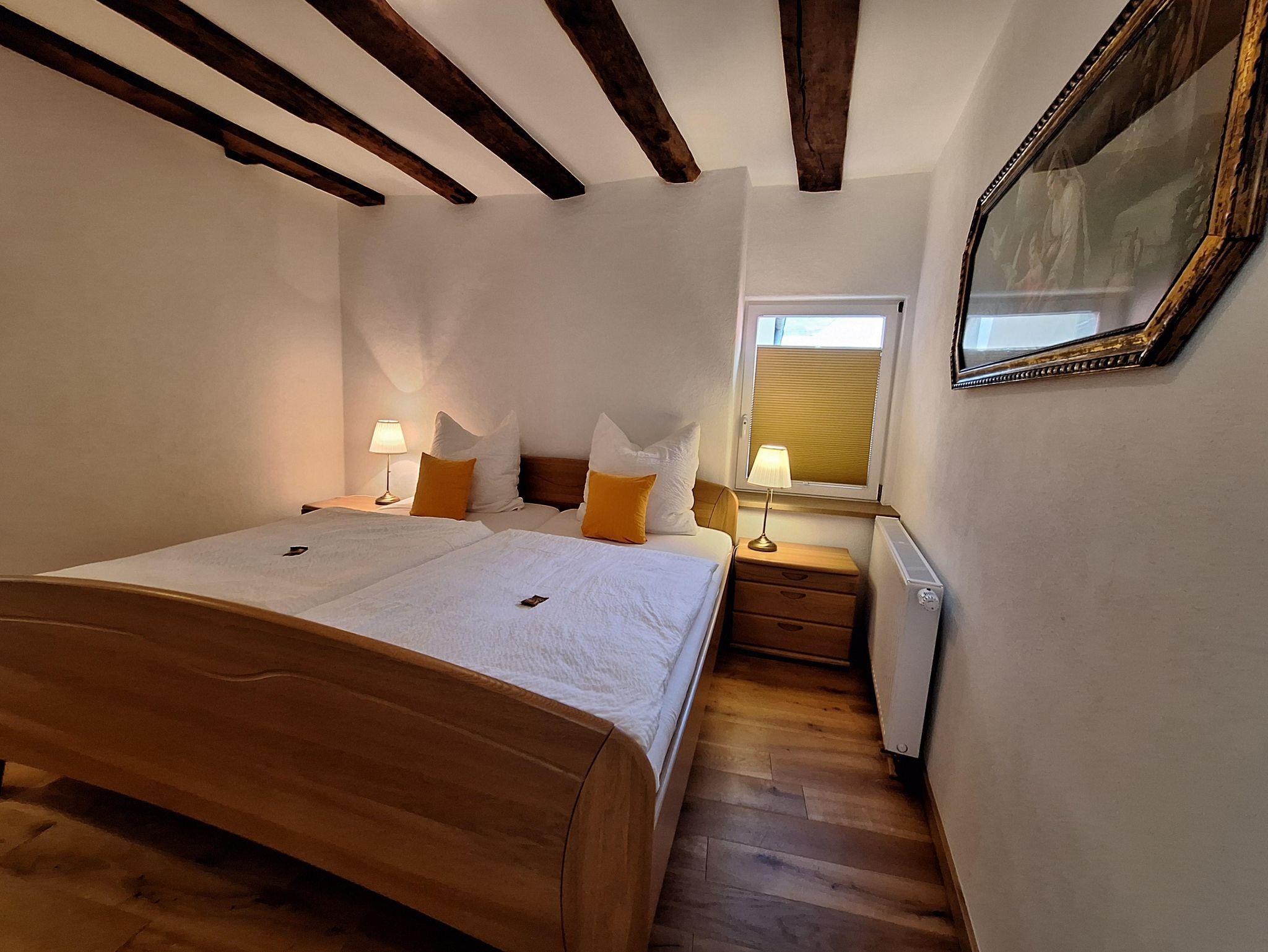 Die Ferienwohnung “Bergblick” befindet sich im Erdgeschoss des Hauses. Das Herzstück ist die kleine Wohn- und Essküche, gemütlich im Stil des historischen Hauses eingerichtet. In der Küche sind Ceranfeldherd, Backofen, Spülmaschine, Toaster, Wasserkocher und einem Kühlschrank mit Gefrierfach vorhanden. Im separaten Schlafzimmer befindet sich ein Doppelbett, für ruhige und erholsame Nächte. Bezogene Betten und Handtücher sind für uns eine Selbstverständlichkeit. Das Badezimmer ist mit einer ebenerdigen Dusche, einem WC sowie einem Handtuchwärmer und Fön ausgestattet.